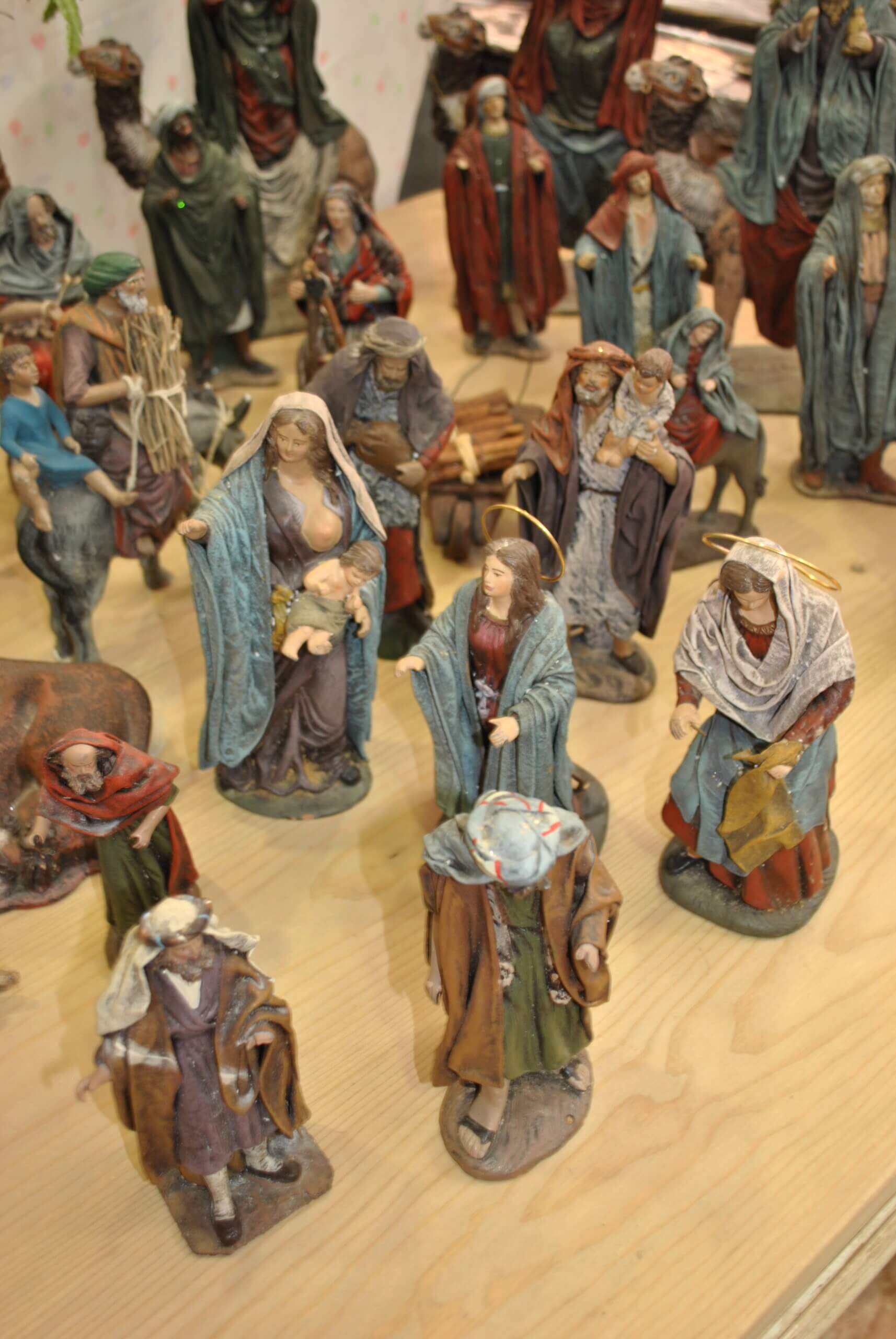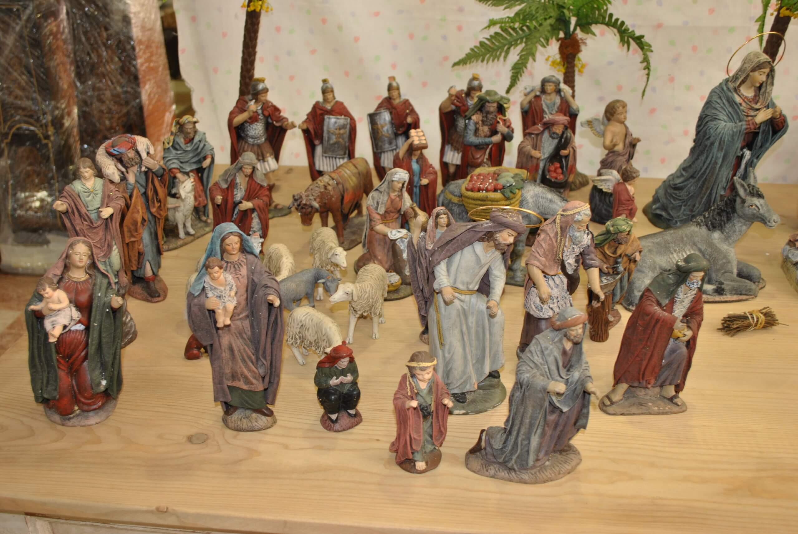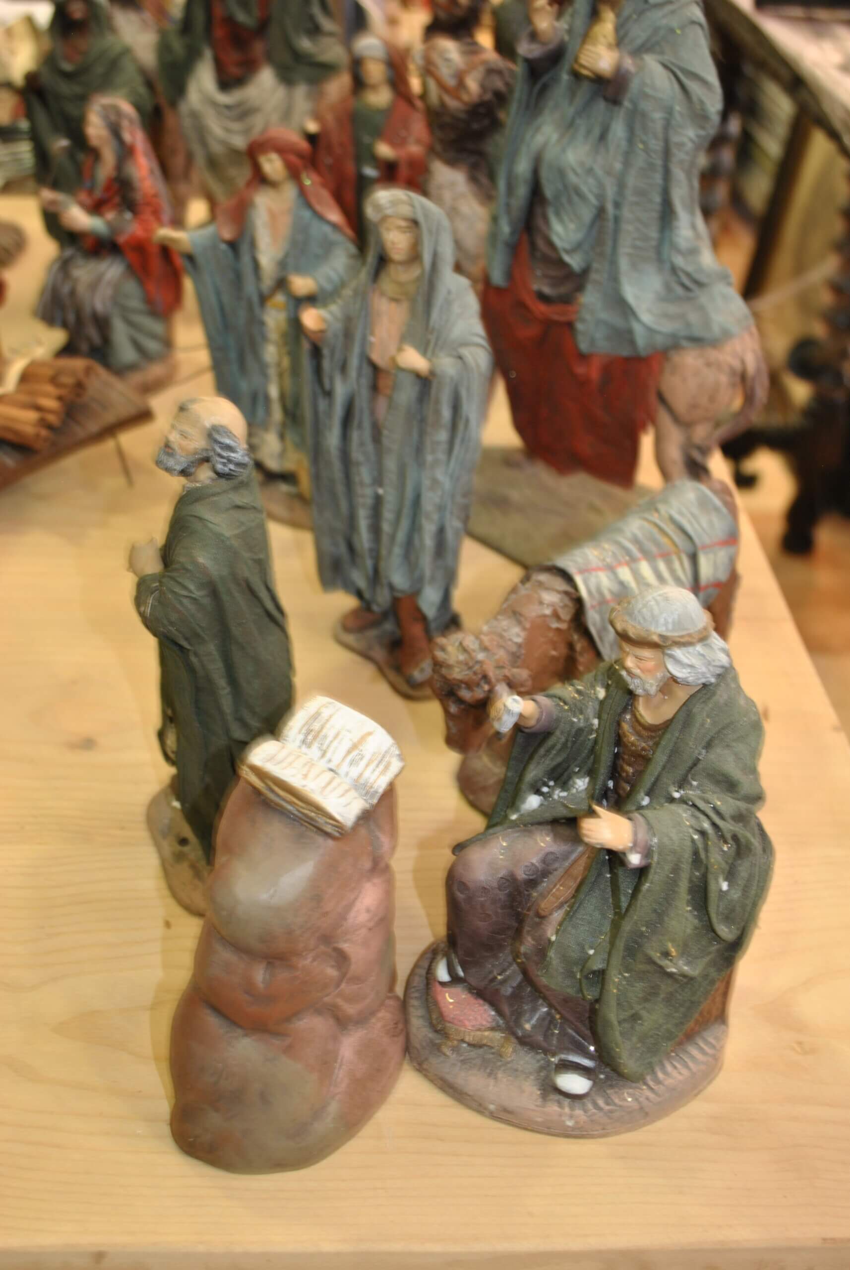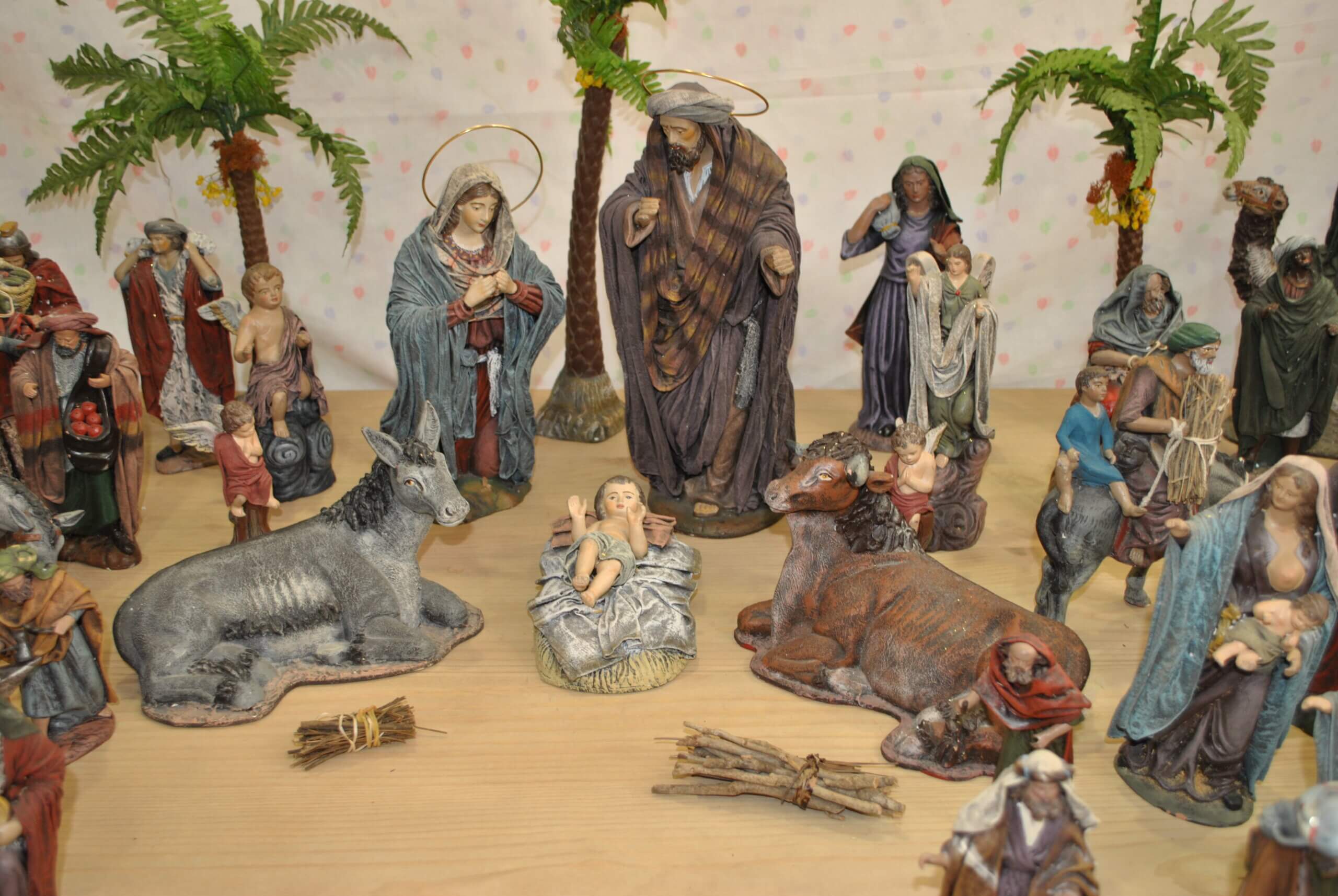 REF: 11880 – Magnífico belén artesanal compuesto por 72figuras policromadas pintadas a mano por J. Fernández con gran detalle, que incluyen la Sagrada Familia, los Reyes Magos con su séquito, pastores, aldeanos, animales y palmeras decorativas, todas dispuestas sobre una sólida mesa de madera maciza con acabado envejecido en blanco decapado. Las figuras, de entre 12 y 28 cm de altura, destacan por su realismo y expresividad, convirtiendo este conjunto en una pieza única ideal para coleccionistas, decoración de iglesias, capillas o espacios religiosos, así como para realzar escaparates y salones durante la Navidad.