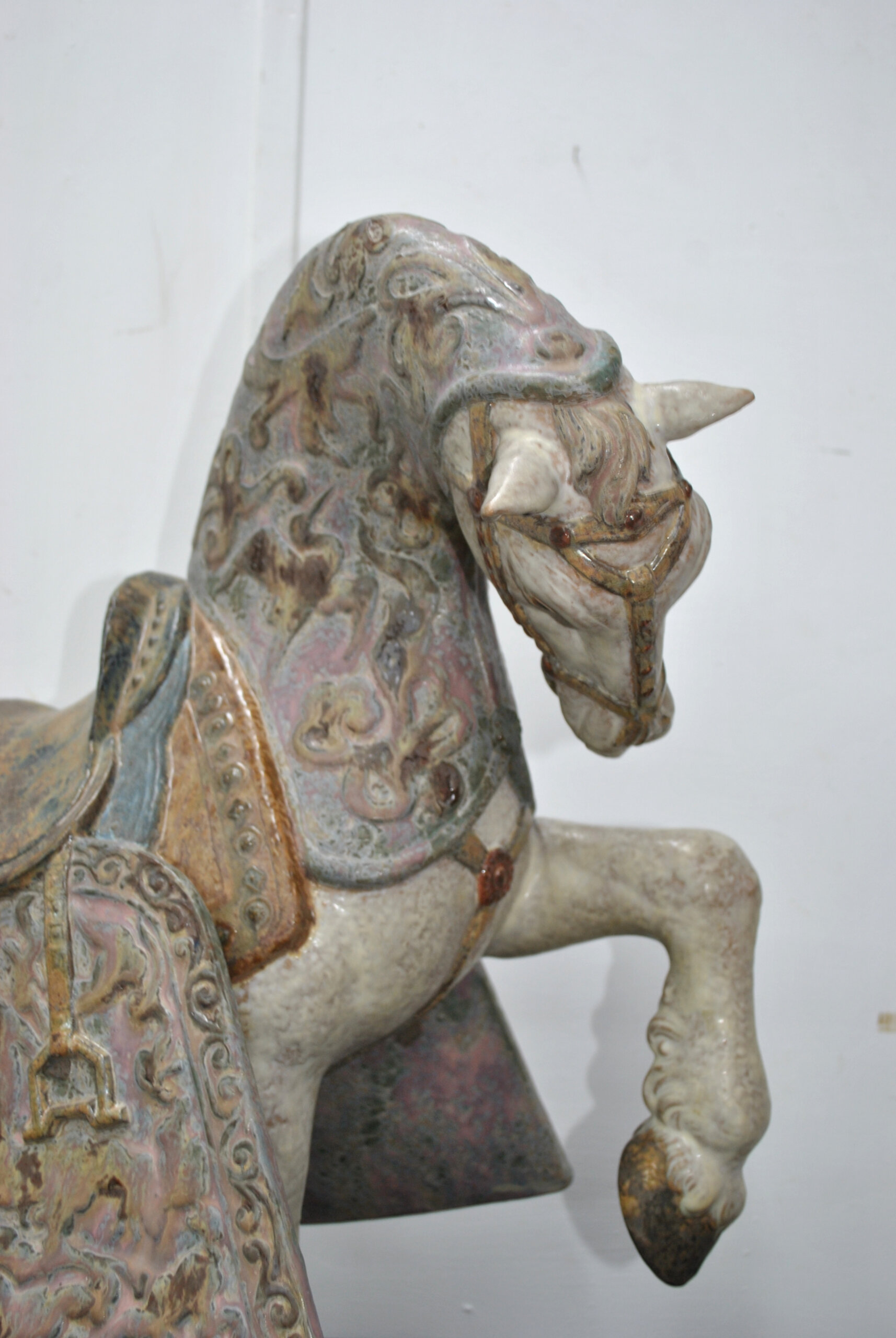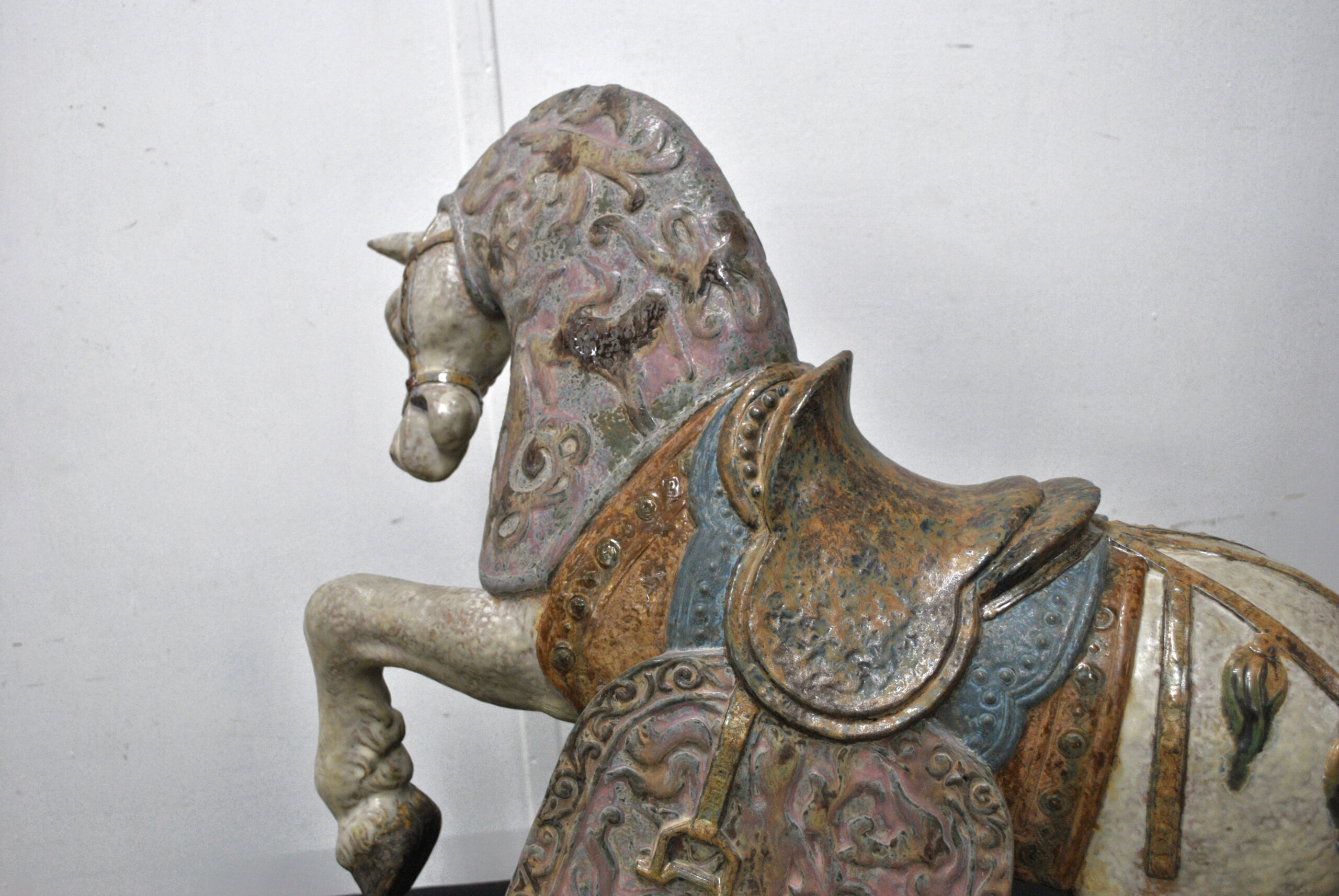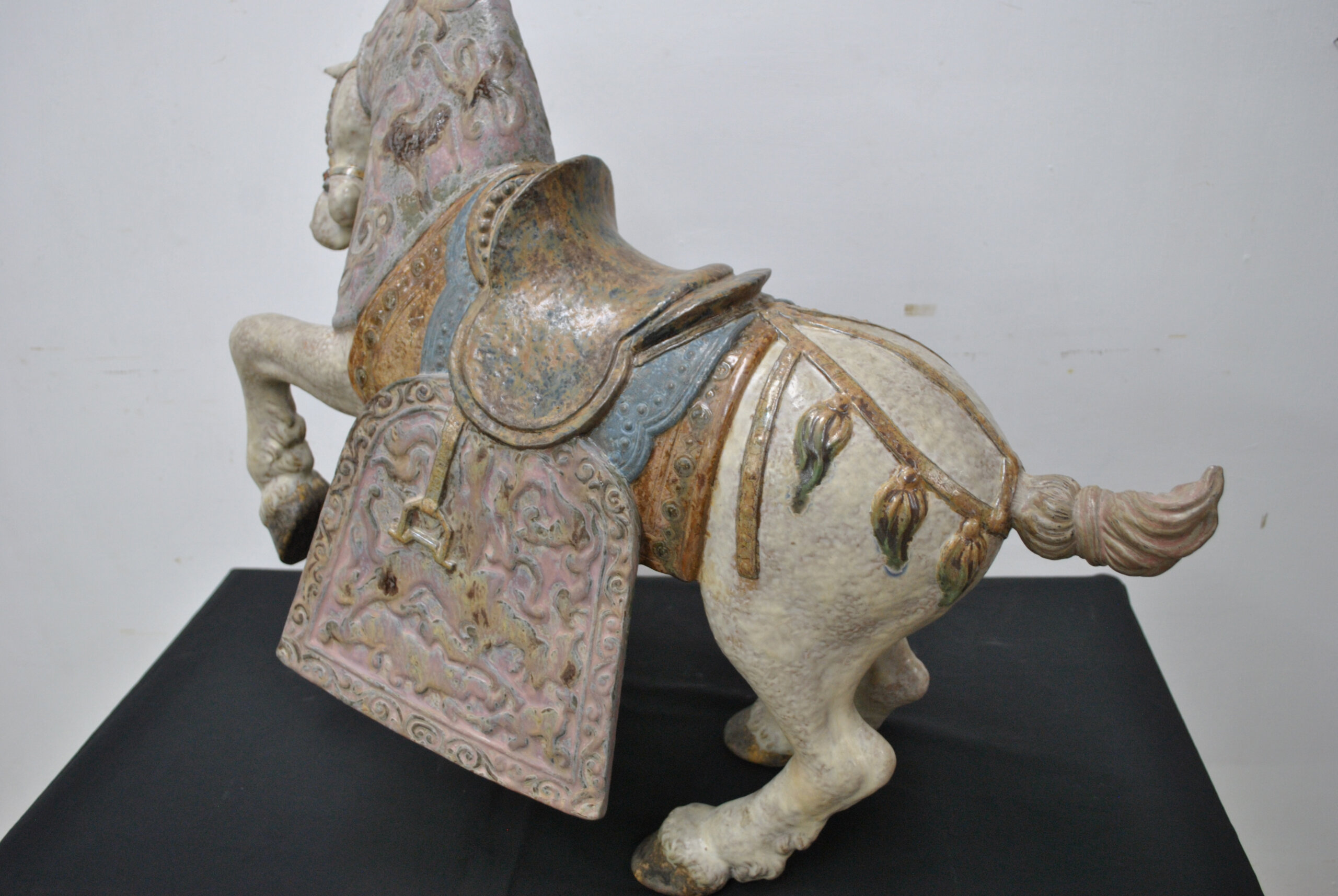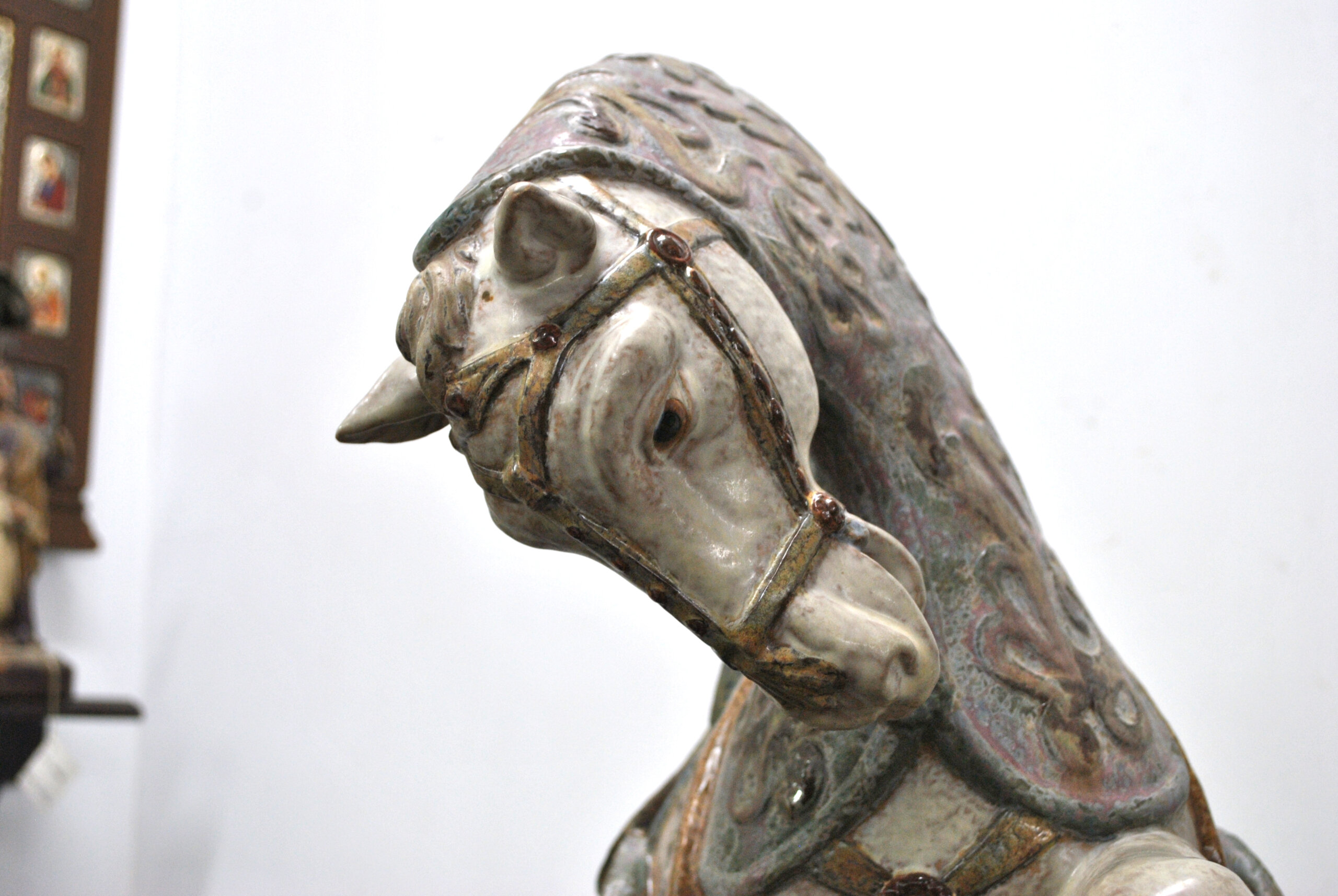 REF: 11993 – Impresionante escultura de caballo oriental realizada en porcelana vidriada policromada, perteneciente a la producción artística de Lladró (Valencia), elaborada en colaboración con el Taller Auriel y firmada por el escultor J. Maroton.