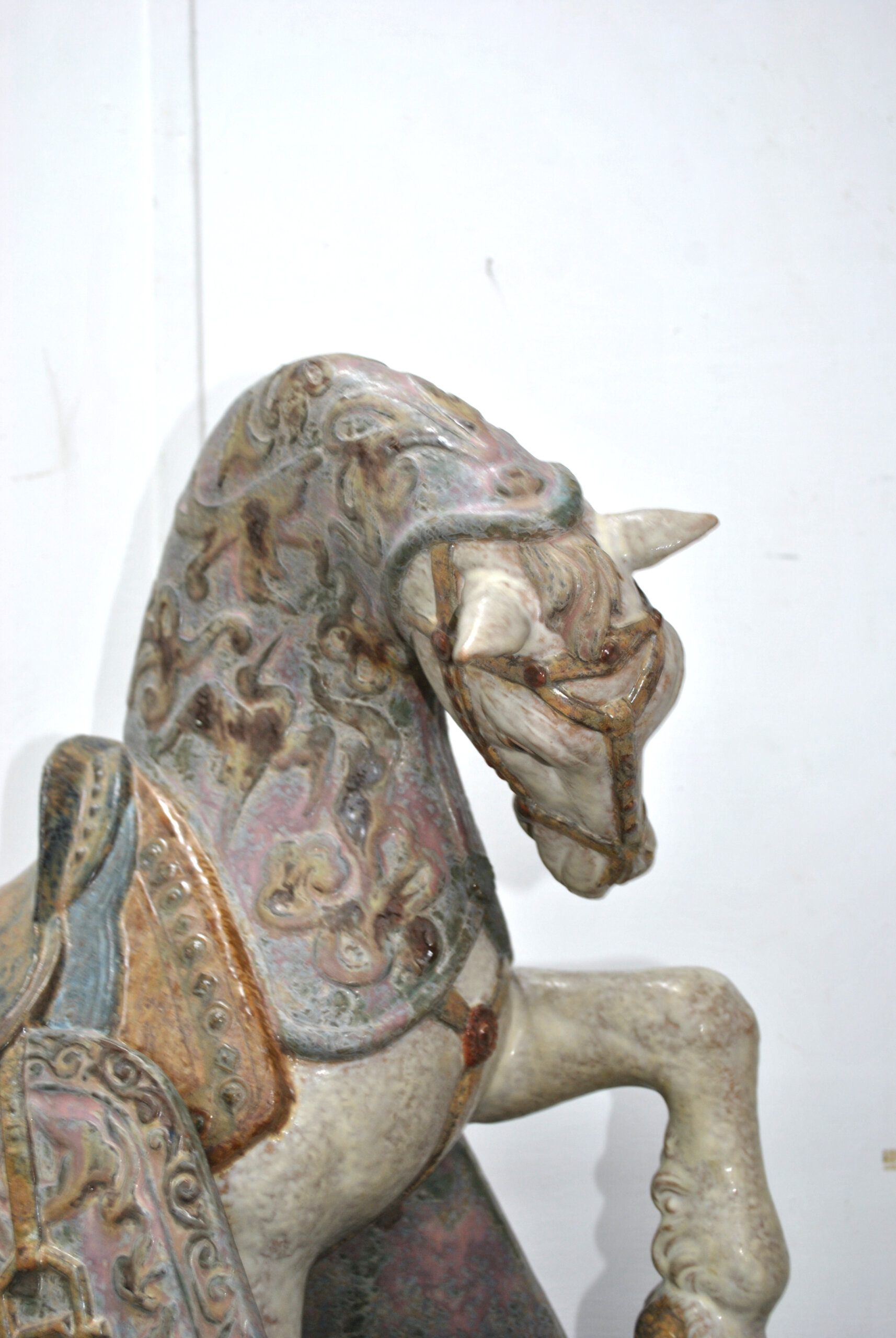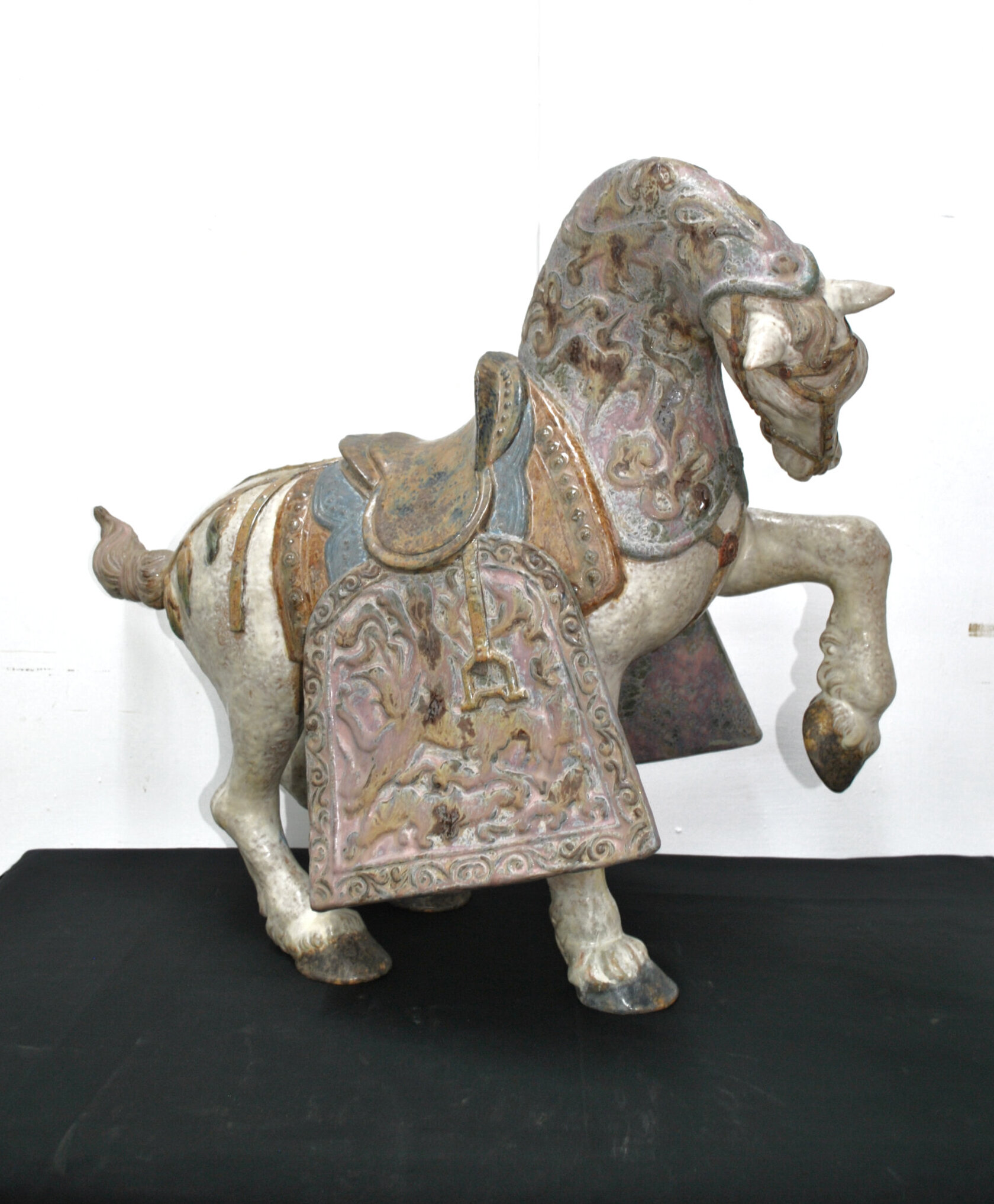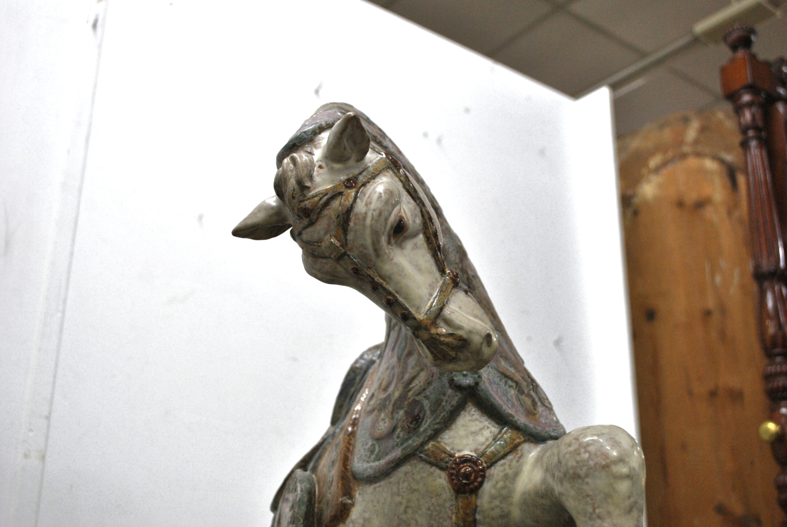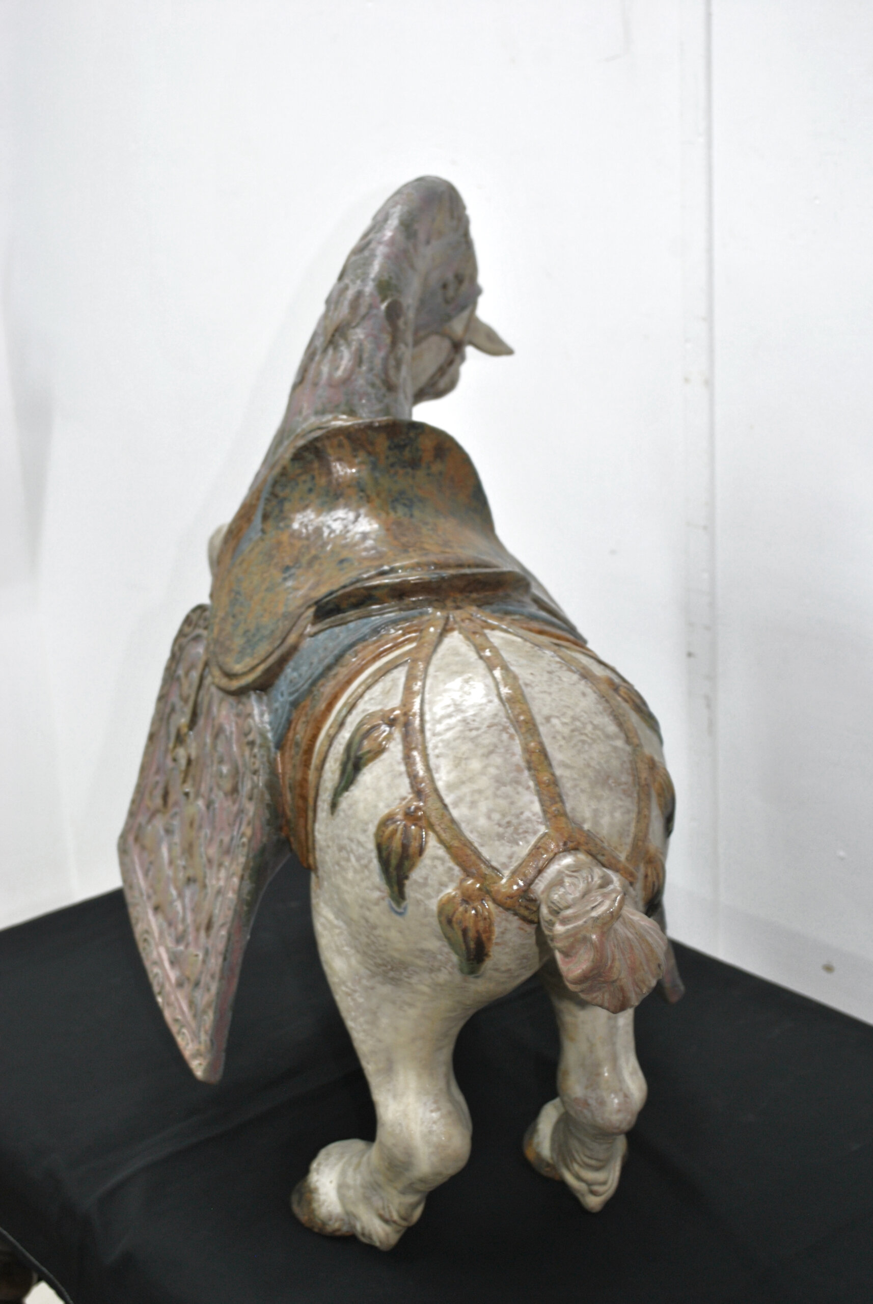 REF: 11993 – Impresionante escultura de caballo oriental realizada en porcelana vidriada policromada, perteneciente a la producción artística de Lladró (Valencia), elaborada en colaboración con el Taller Auriel y firmada por el escultor J. Maroton.