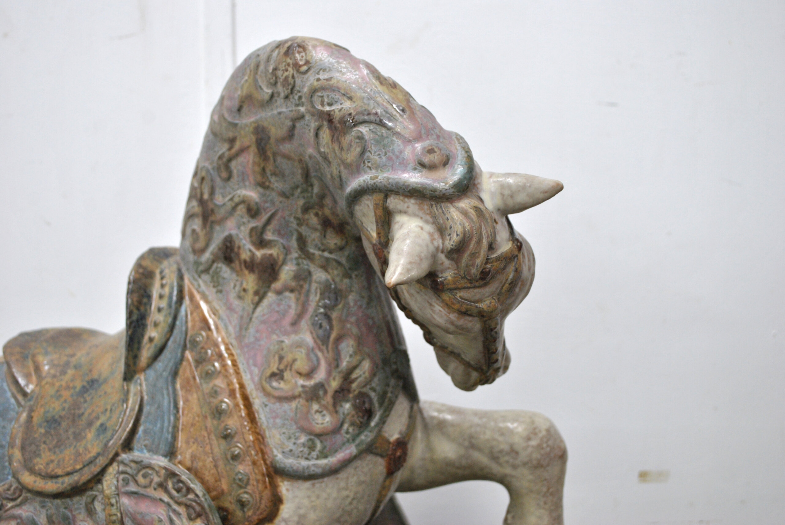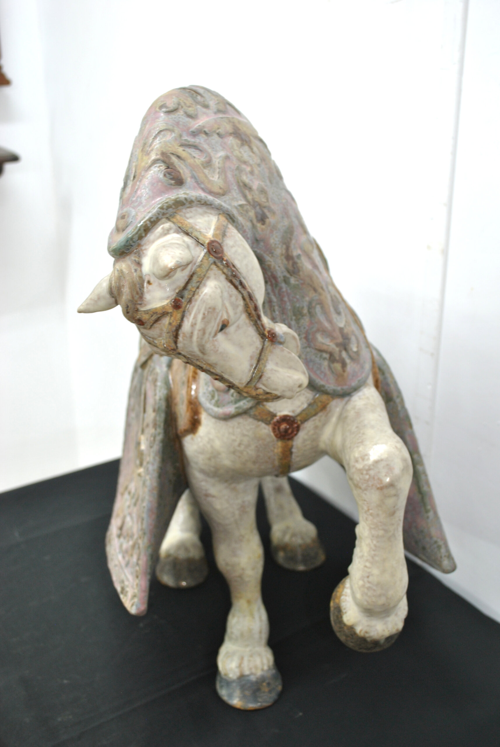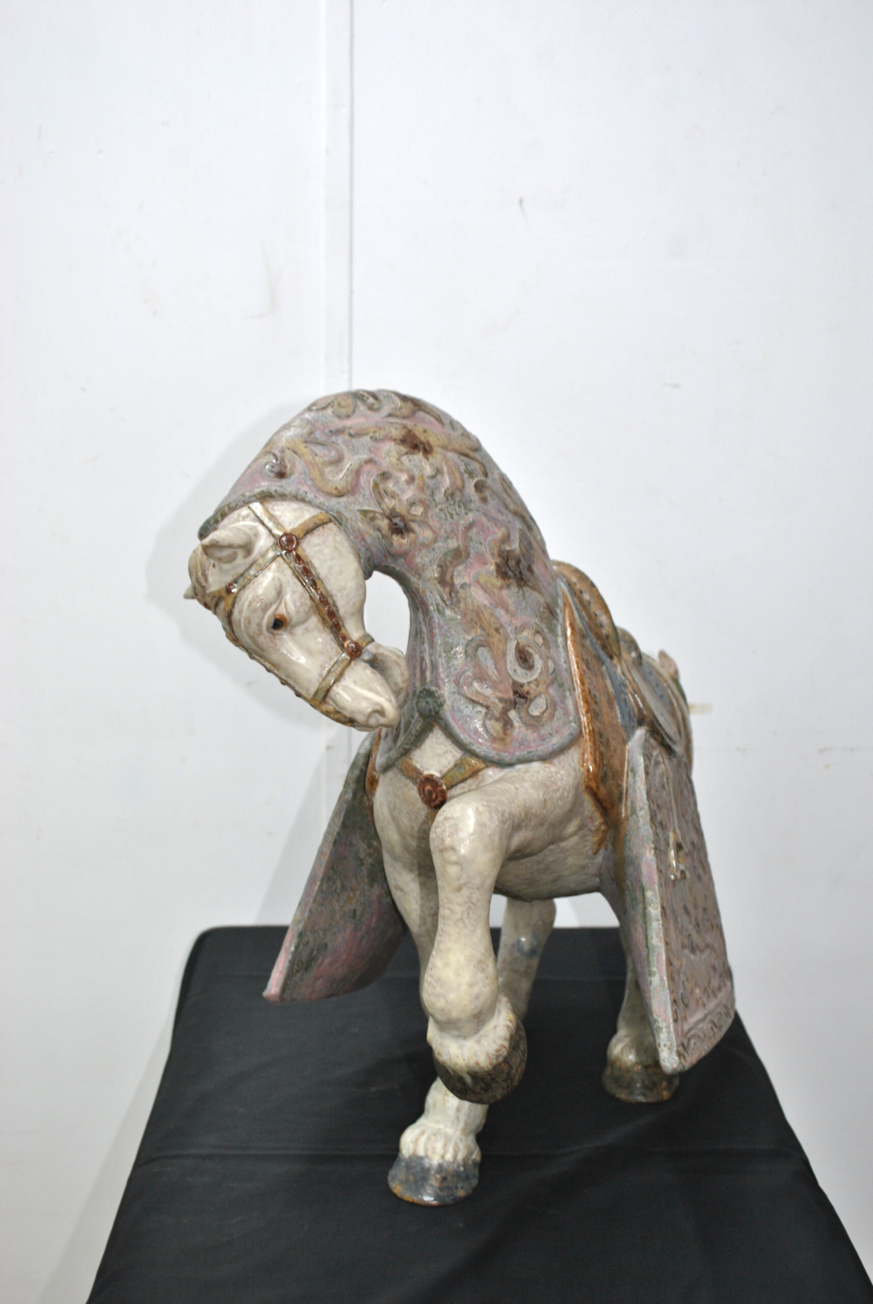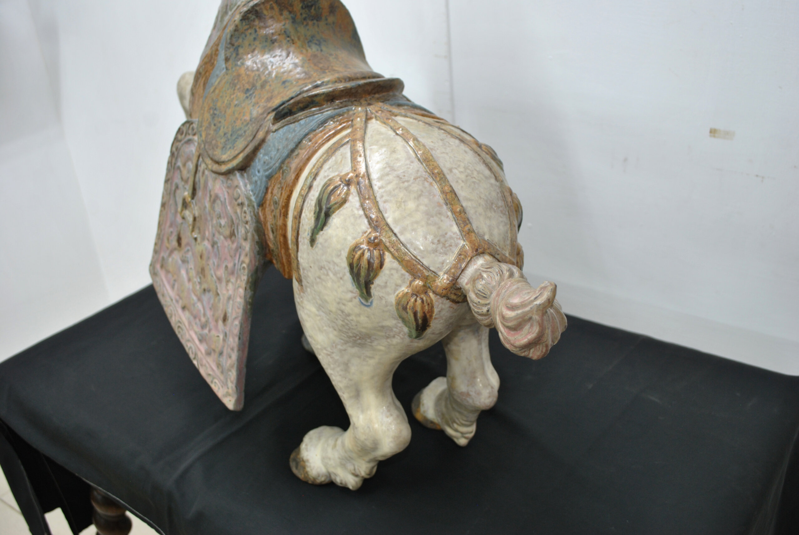 REF: 11993 – Impresionante escultura de caballo oriental realizada en porcelana vidriada policromada, perteneciente a la producción artística de Lladró (Valencia), elaborada en colaboración con el Taller Auriel y firmada por el escultor J. Maroton.