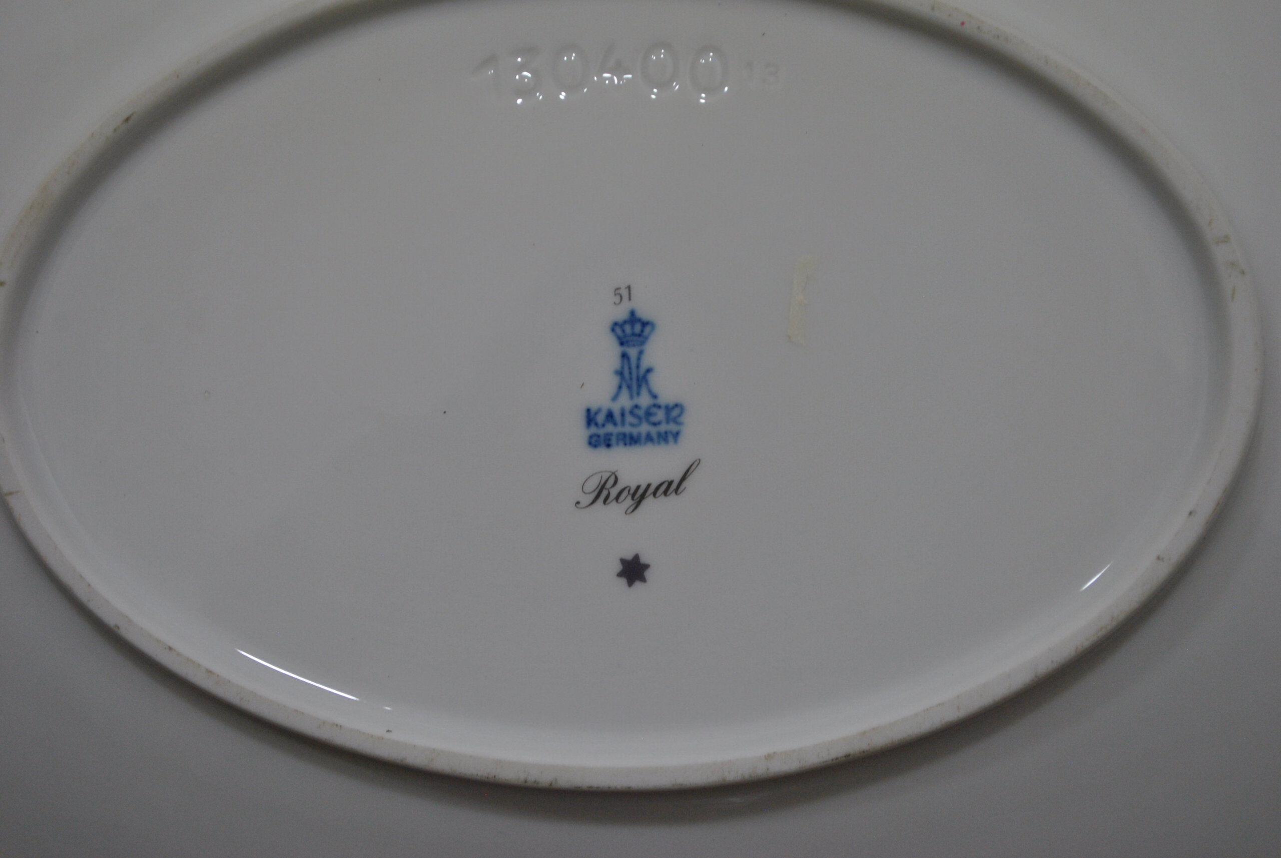 REF: 12178 – Elegante fuente ovalada con asas laterales perteneciente a la prestigiosa firma alemana KAISER – Germany, modelo o línea Royal, tal como se aprecia en el sello original en la base.