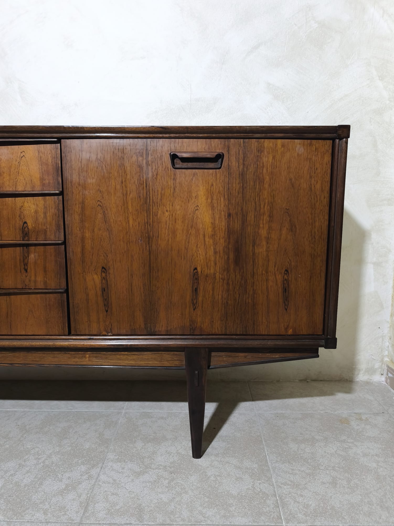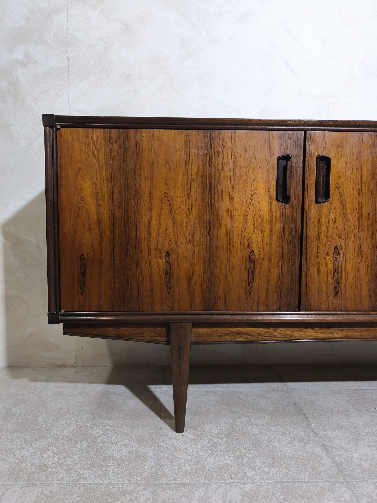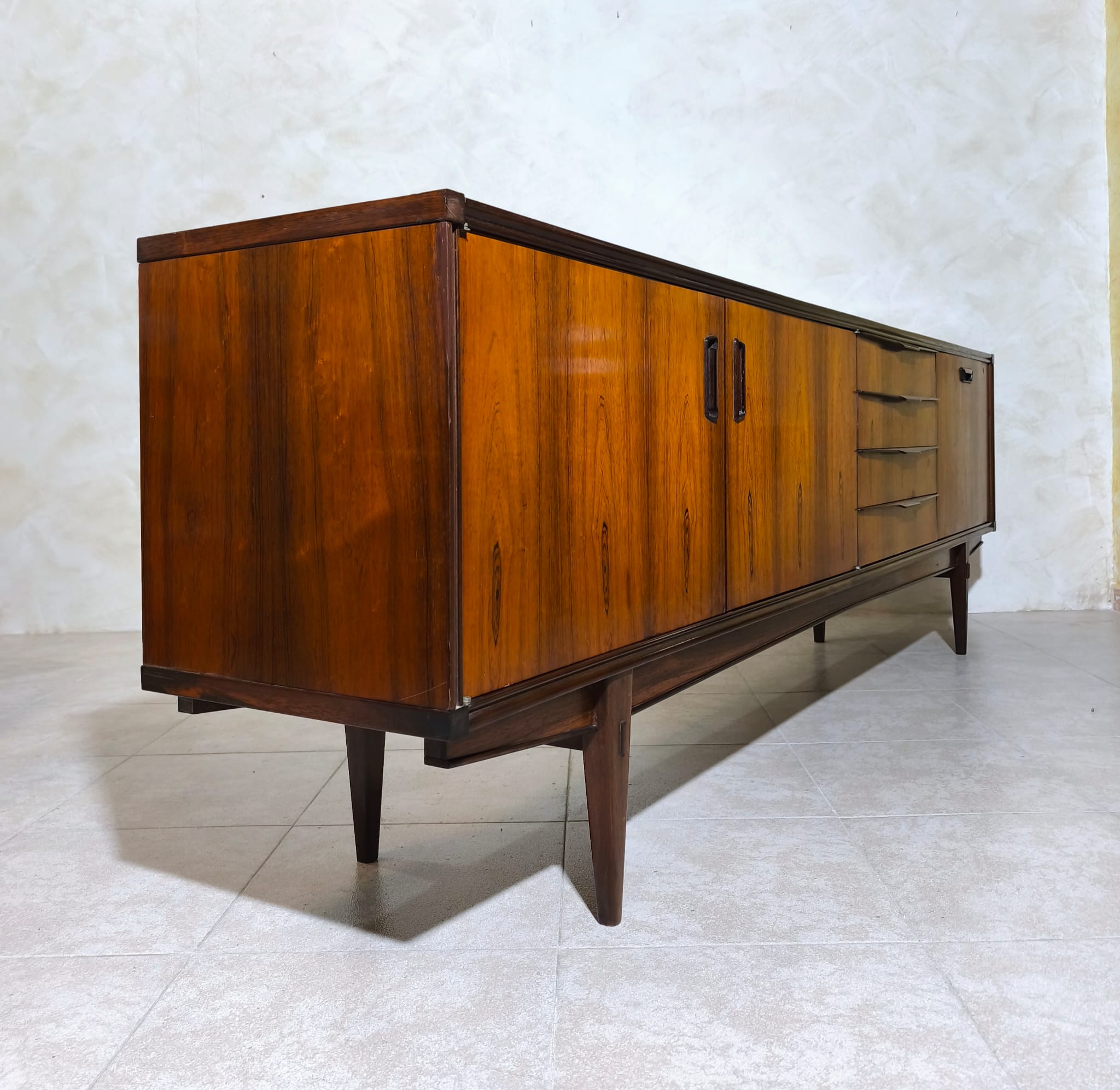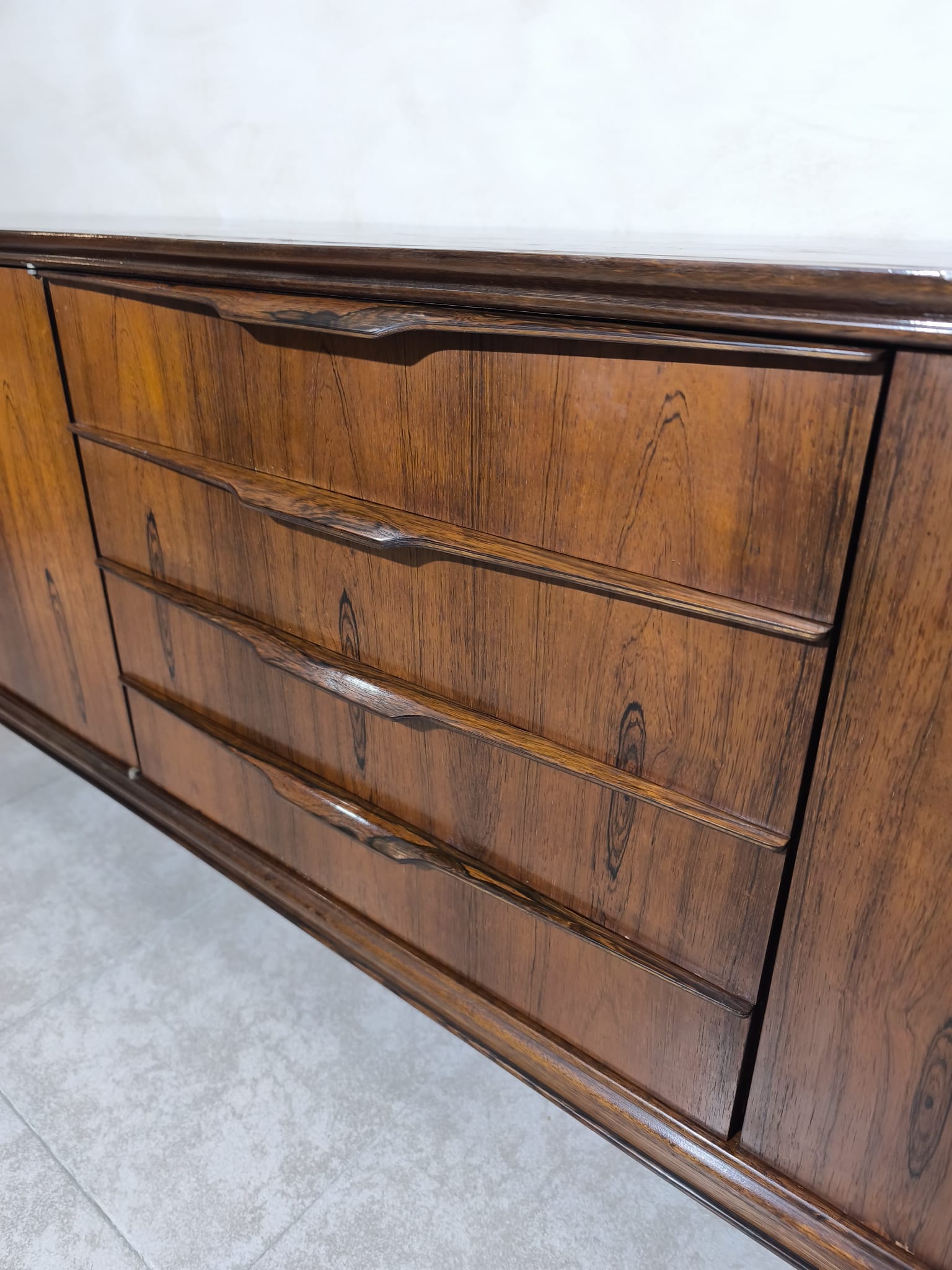 REF: 96358 – Elegante gran aparador de madera de palisandro Myd Century de los años 50, varios compartimentos y 4 cajones, original diseño con una beta muy definida.
