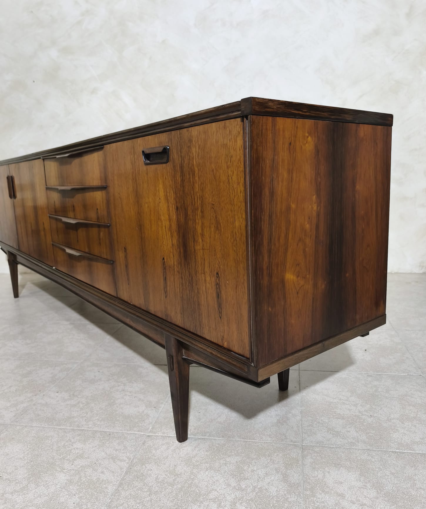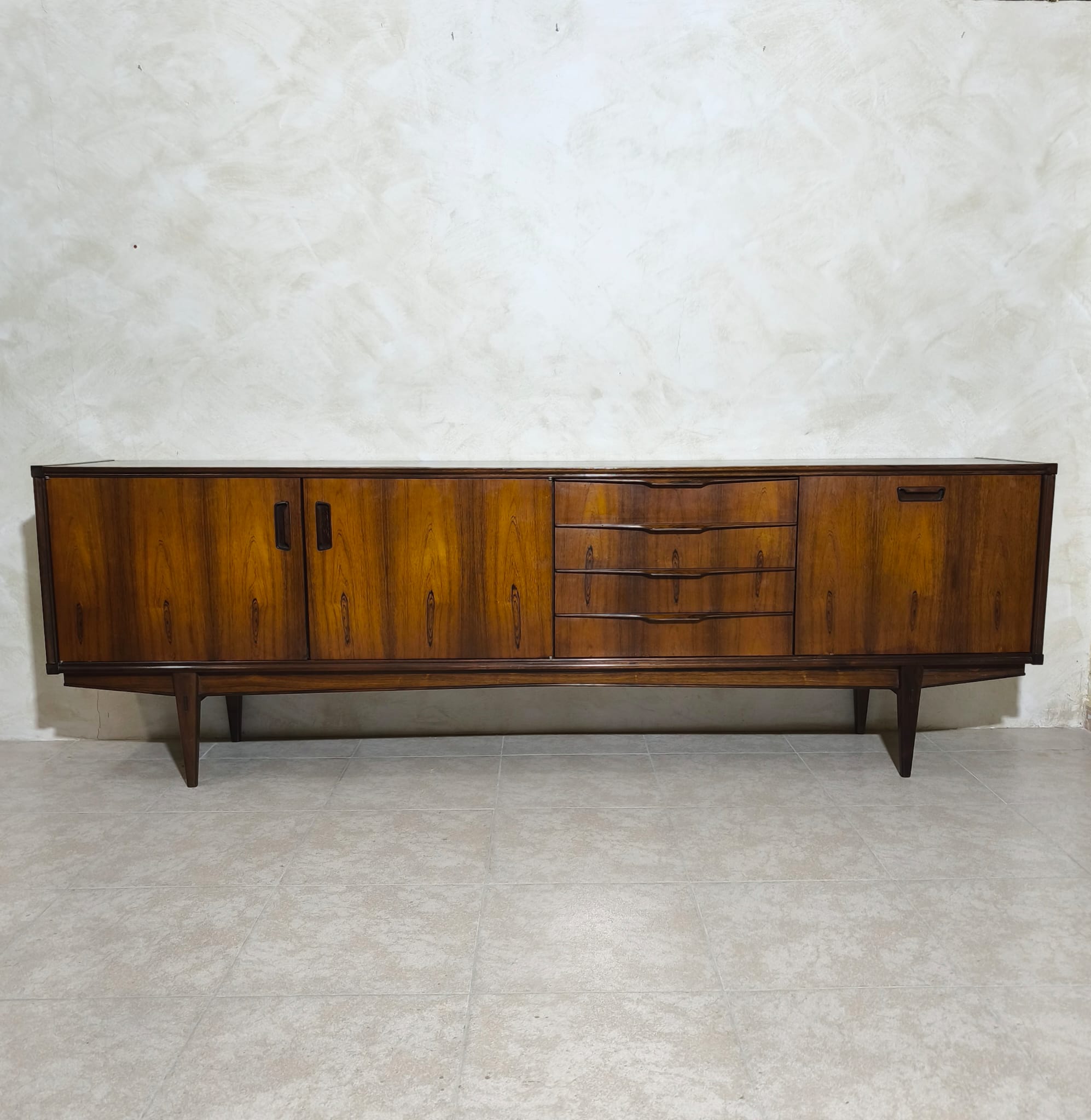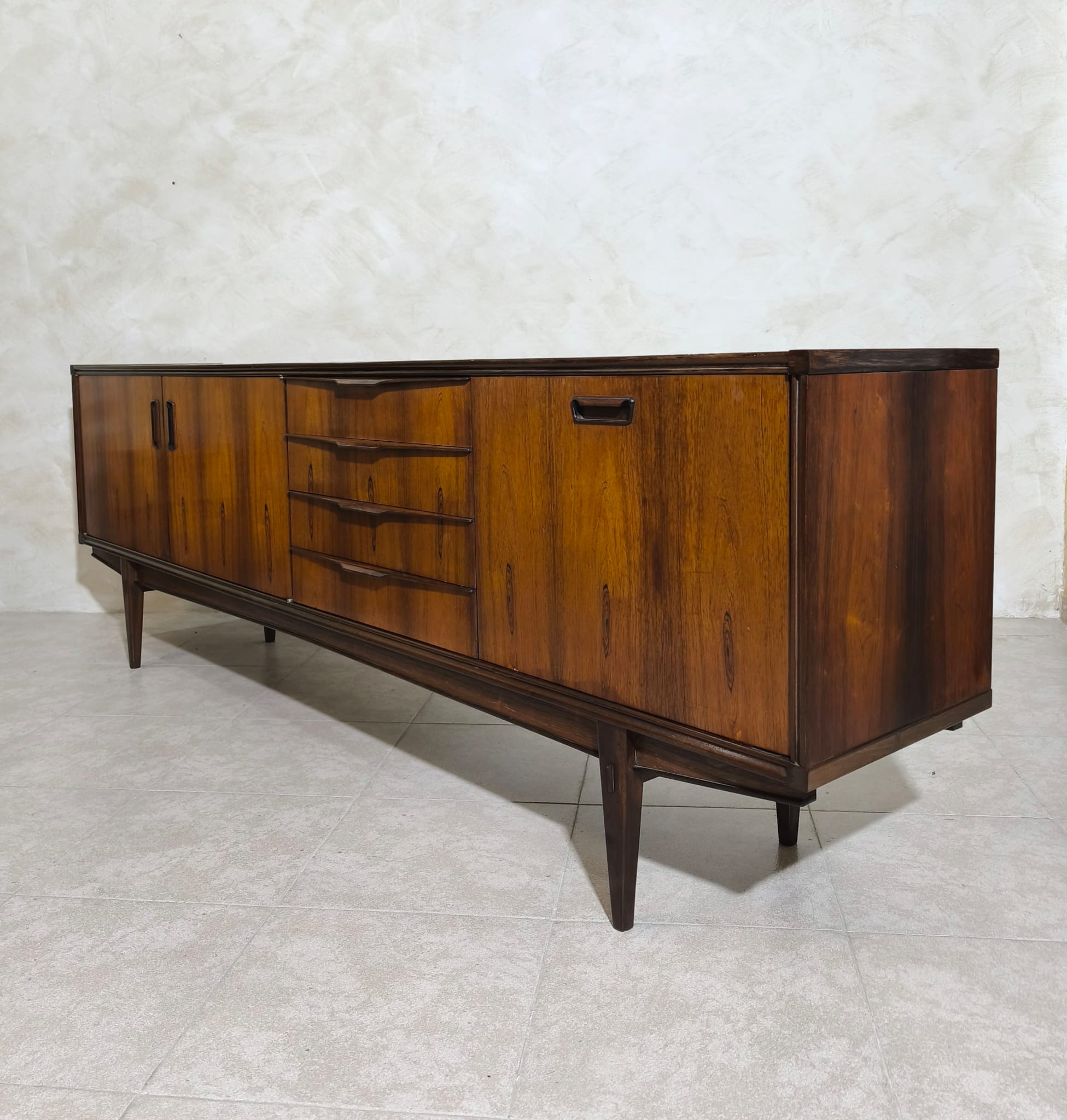 REF: 96358 – Elegante gran aparador de madera de palisandro Myd Century de los años 50, varios compartimentos y 4 cajones, original diseño con una beta muy definida.