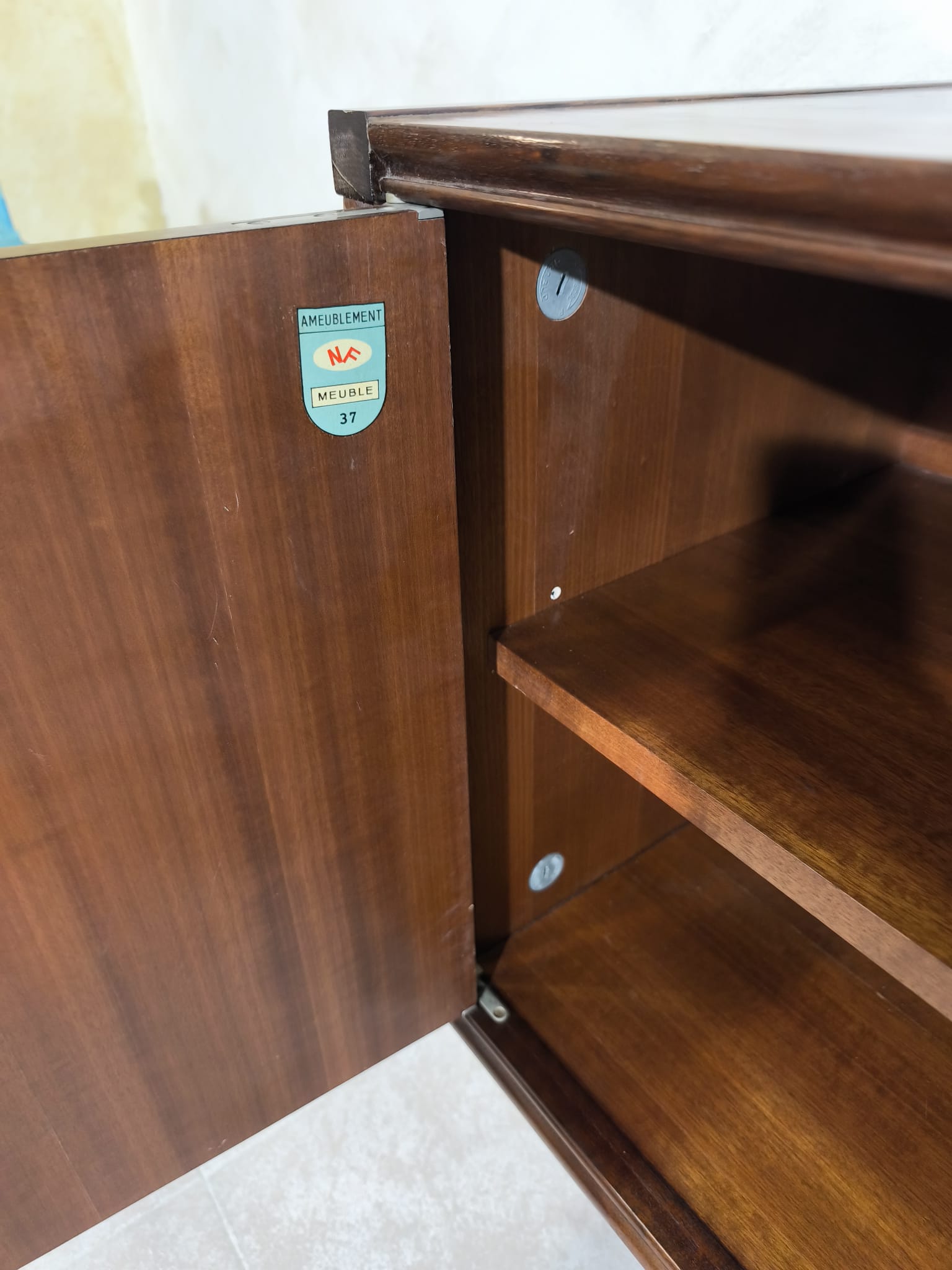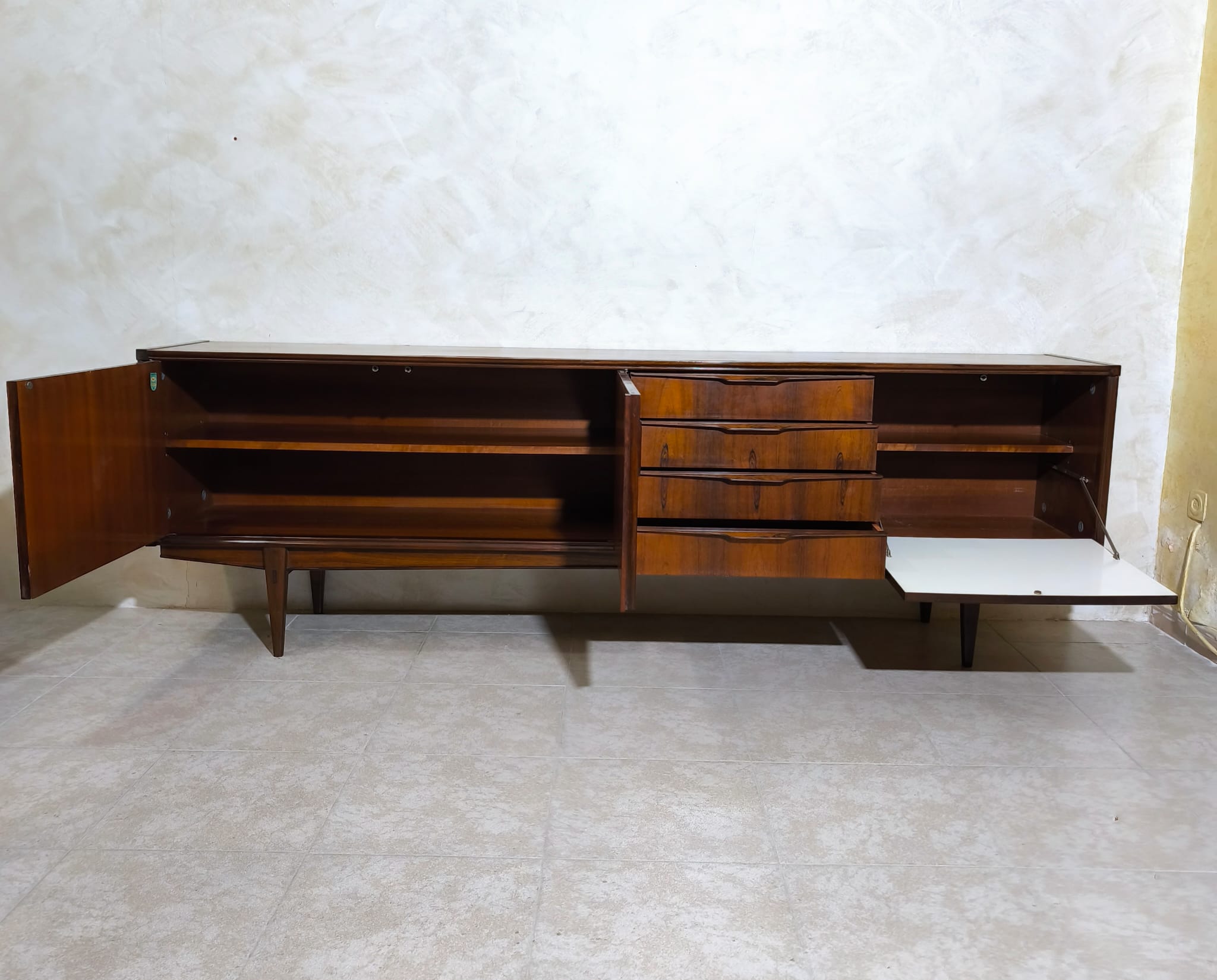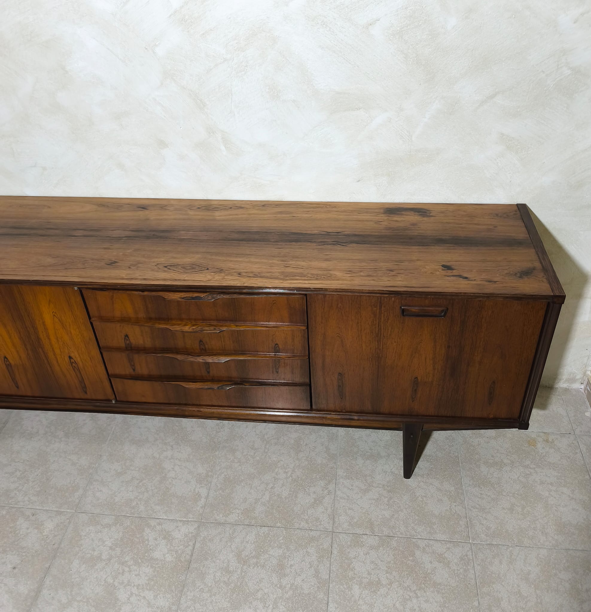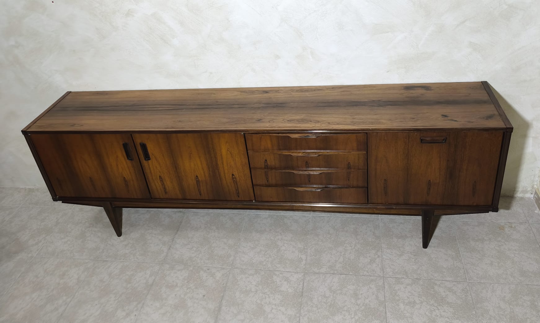 REF: 96358 – Elegante gran aparador de madera de palisandro Myd Century de los años 50, varios compartimentos y 4 cajones, original diseño con una beta muy definida.
