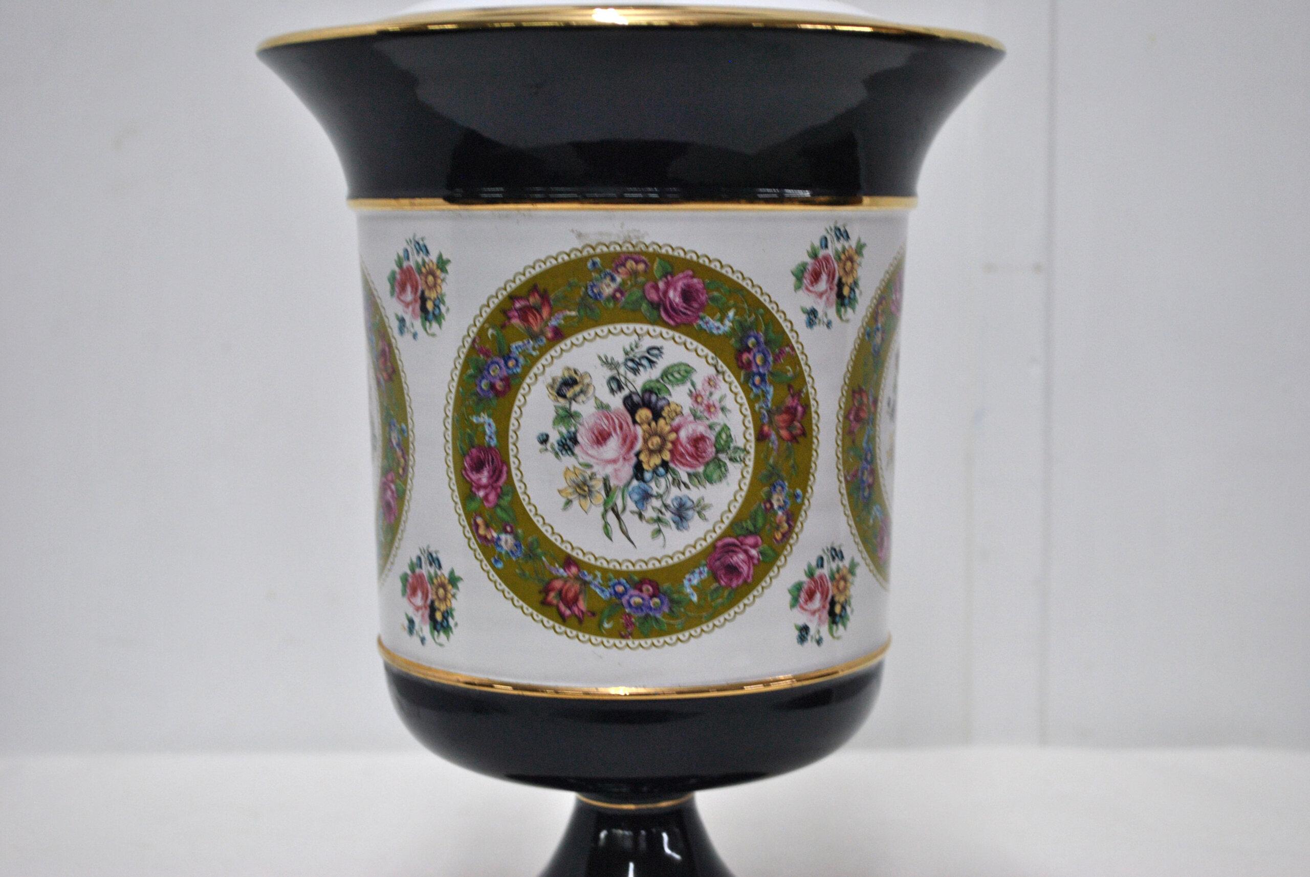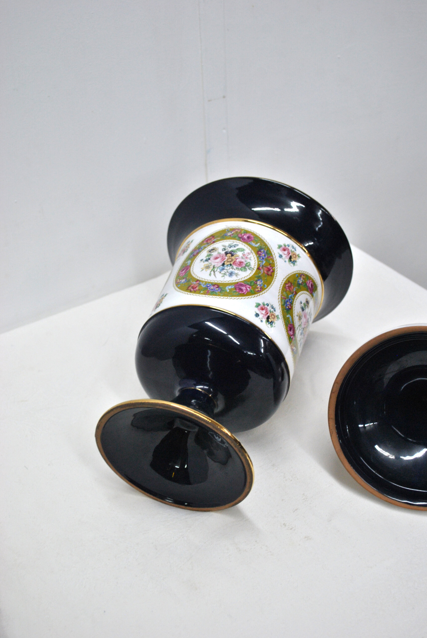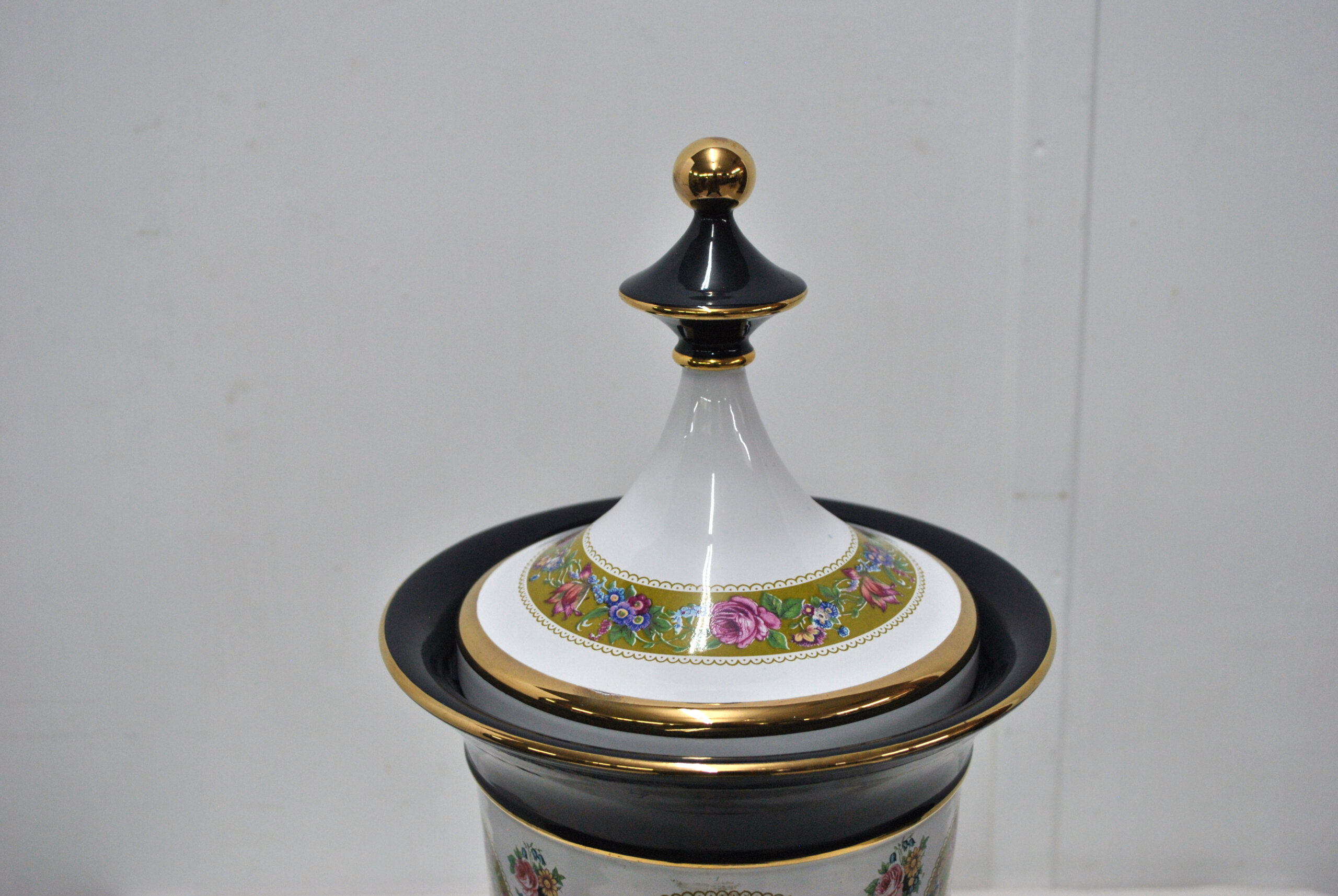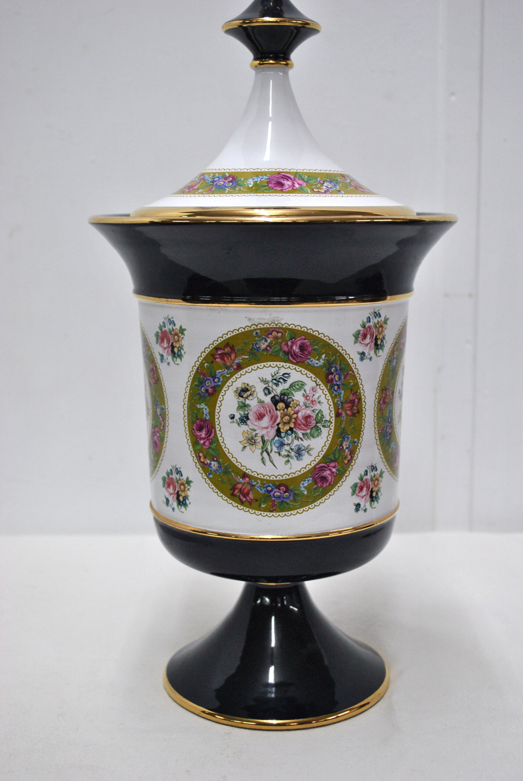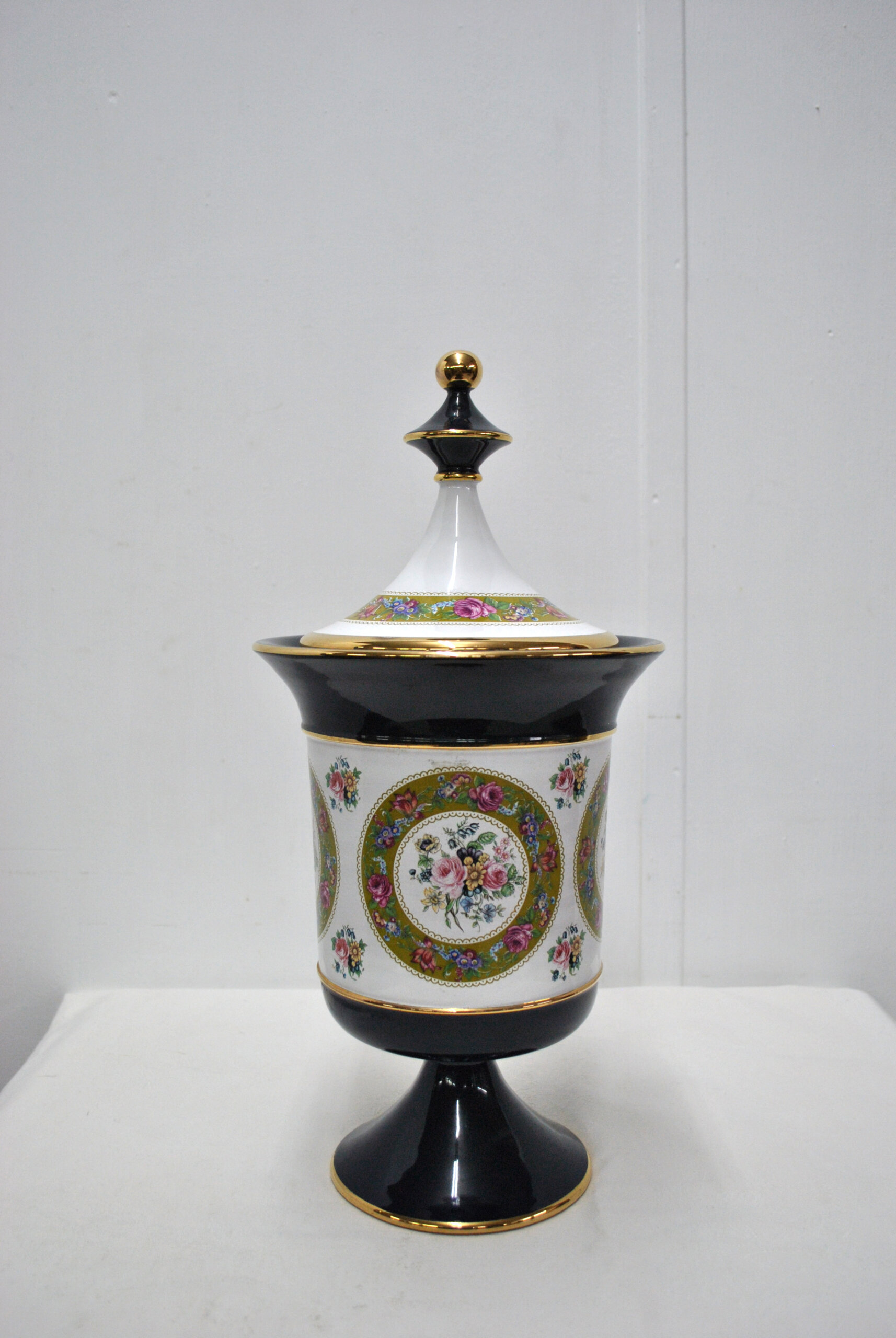 REF: 12363 – Elegante jarrón con tapa de porcelana italiana, una pieza decorativa de gran calidad que destaca por su refinado diseño y delicada ornamentación floral.