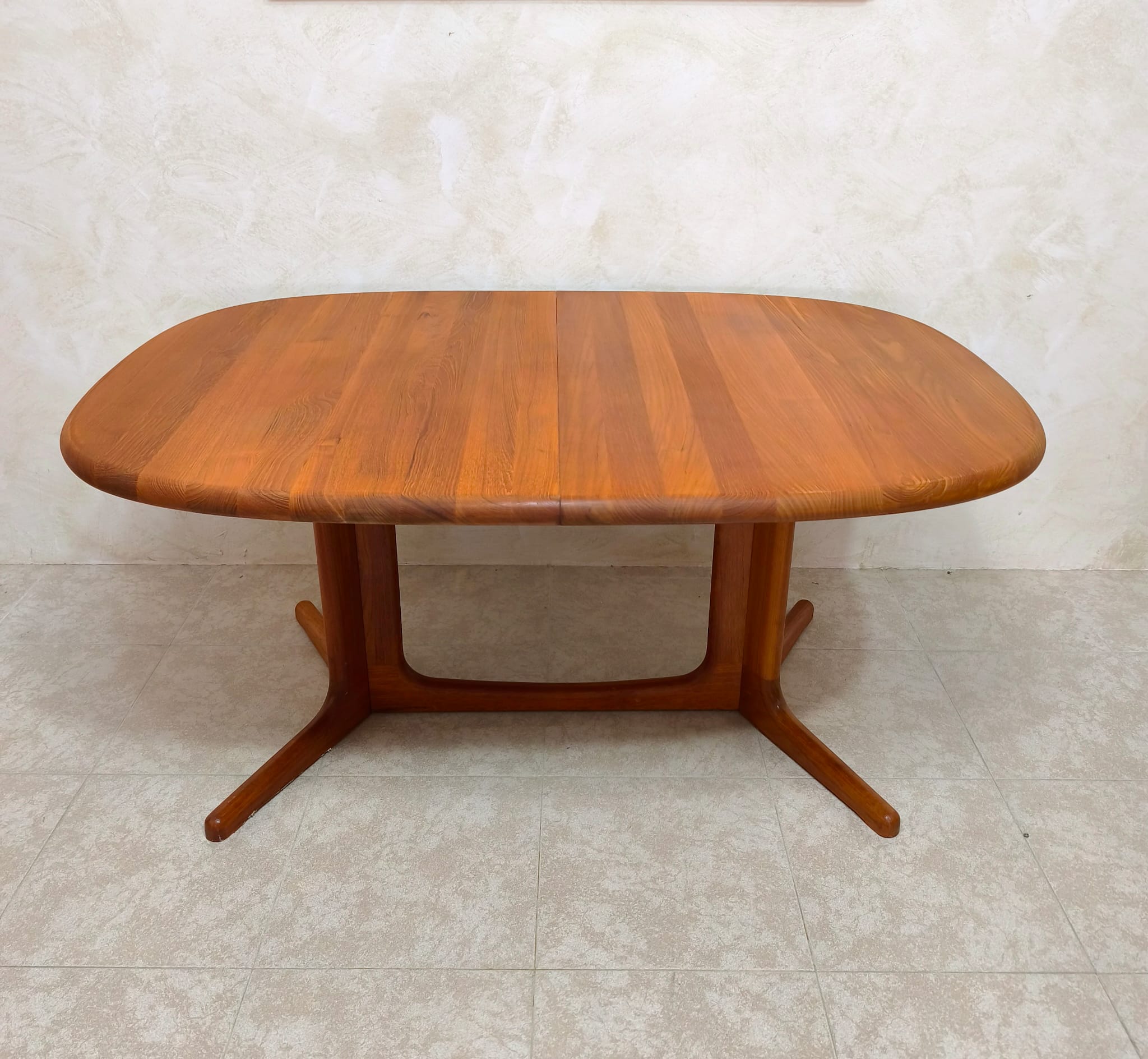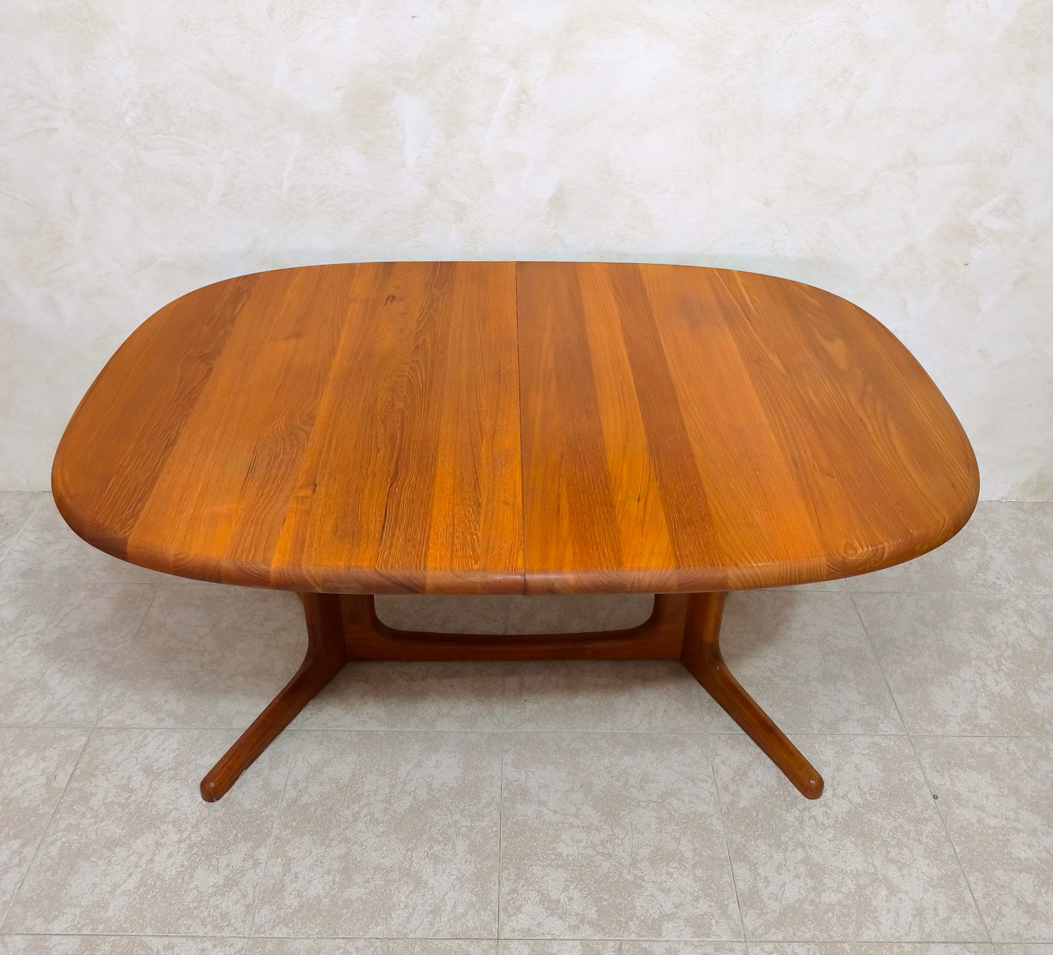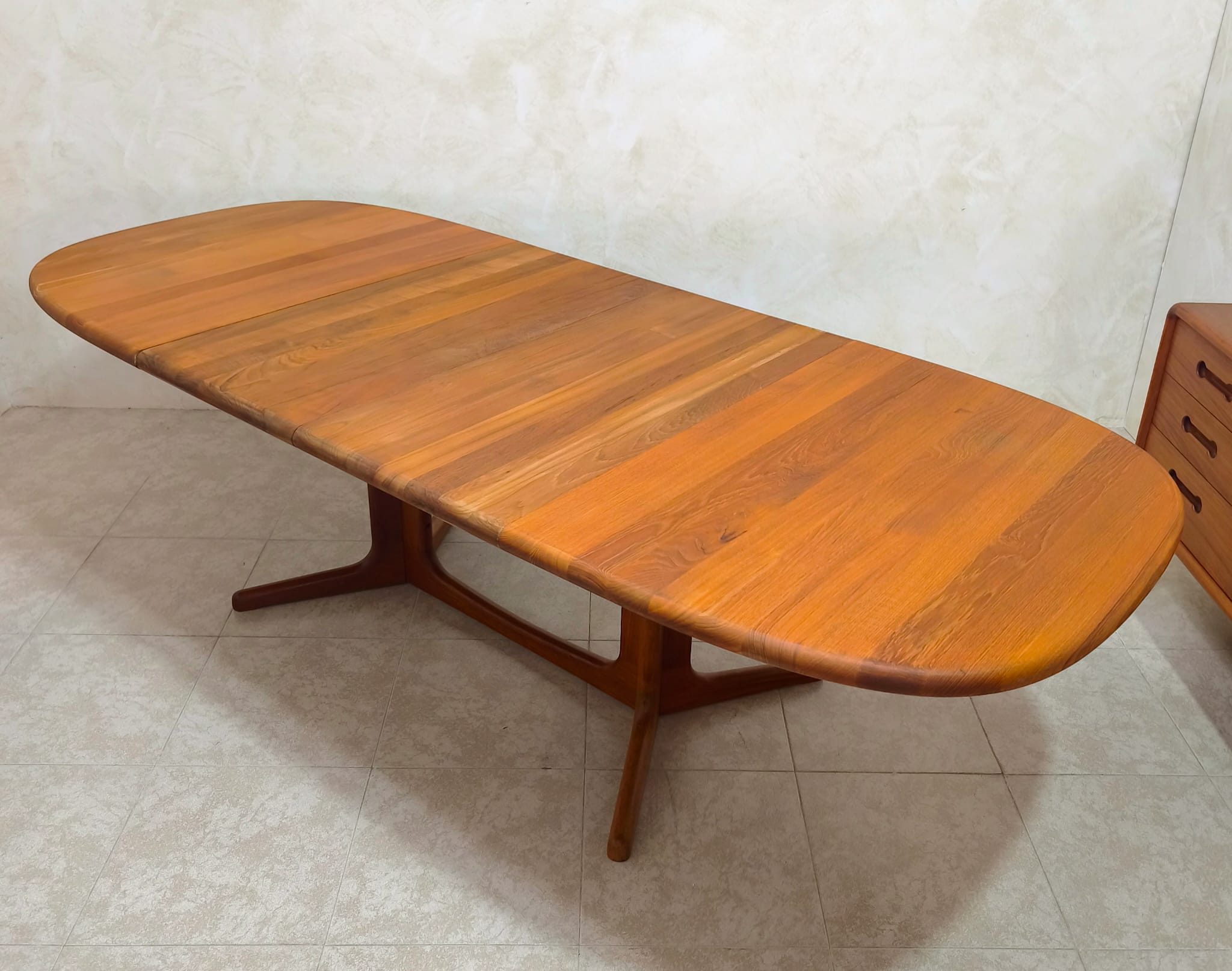 REF: AJ887 – Mesa de comedor extensible ovalada danesa Glostrup de madera maciza de teca de los años 60 de la marca danesa Glostrup con patas en marco de trineo.