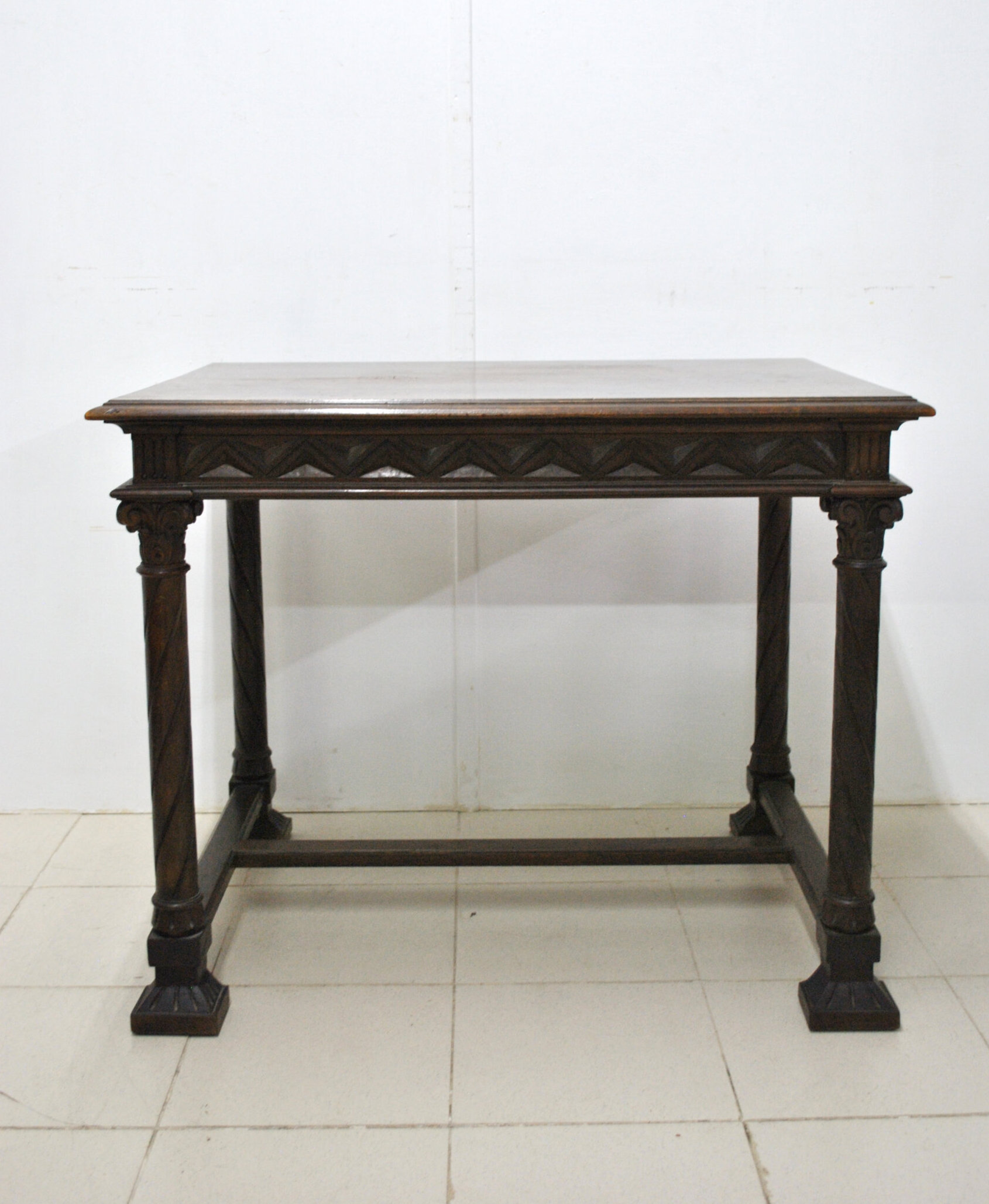 REF: 11923 – Atractiva mesa antigua de estilo renacentista, finamente elaborada en madera maciza de nogal con un esmerado trabajo de talla manual.