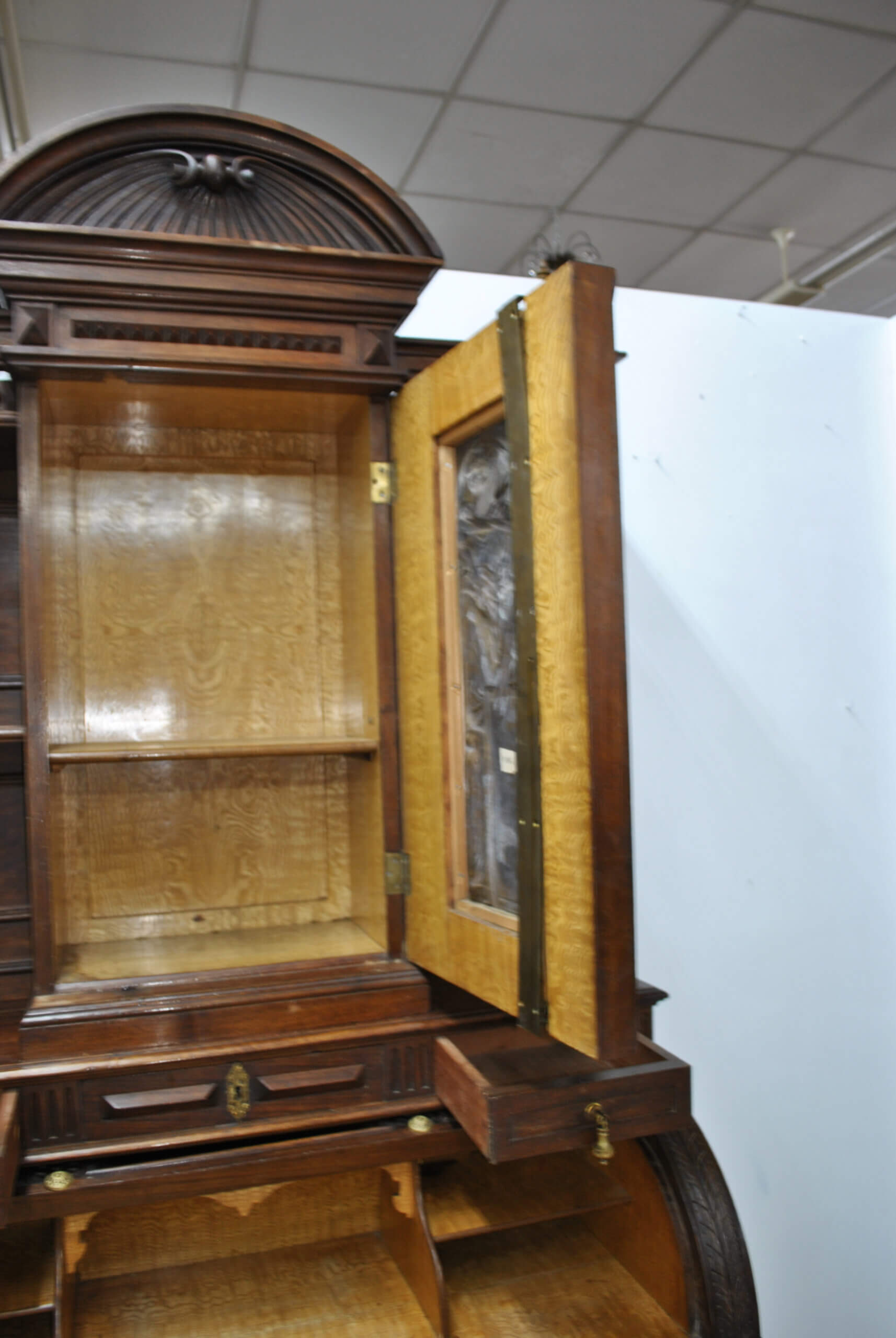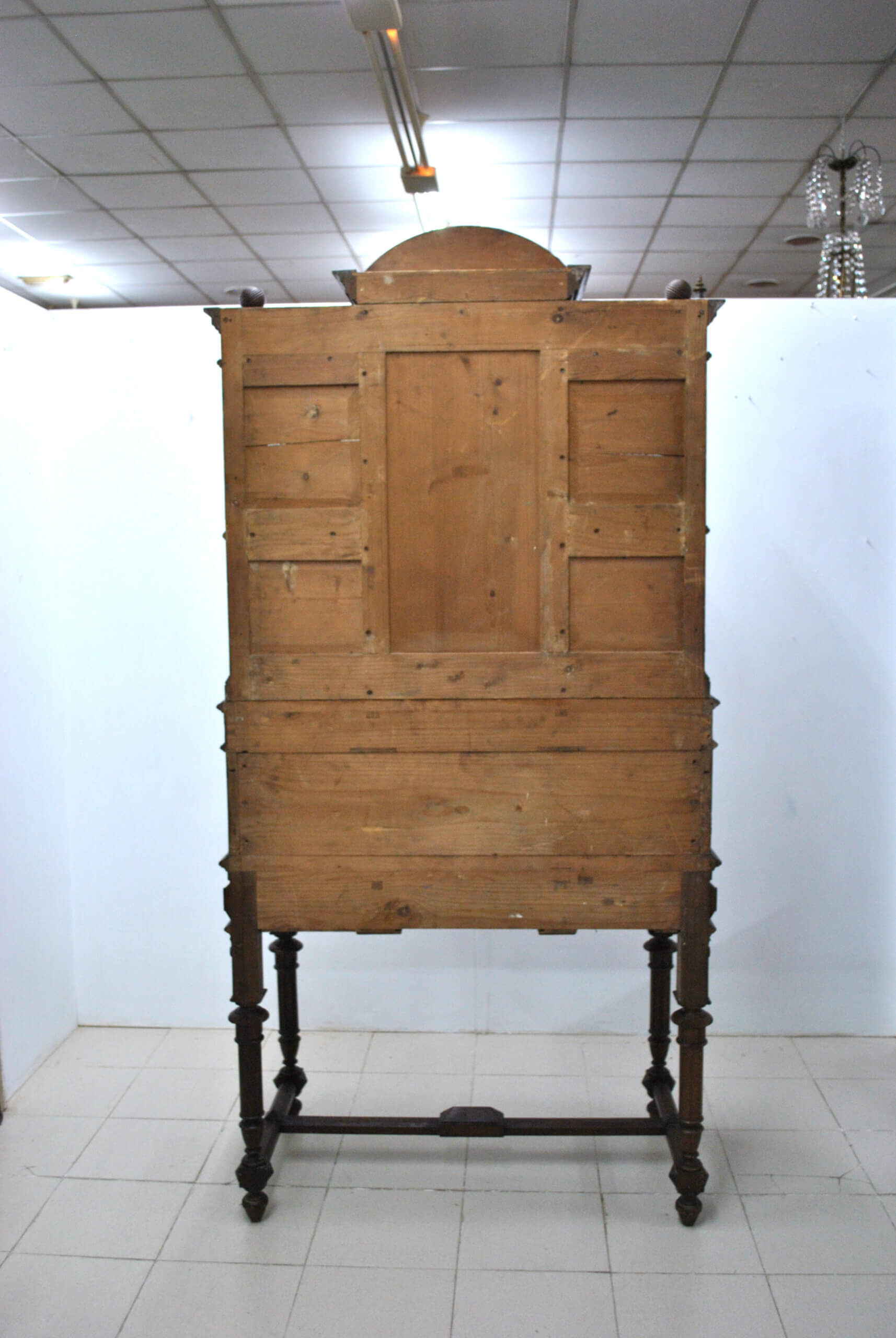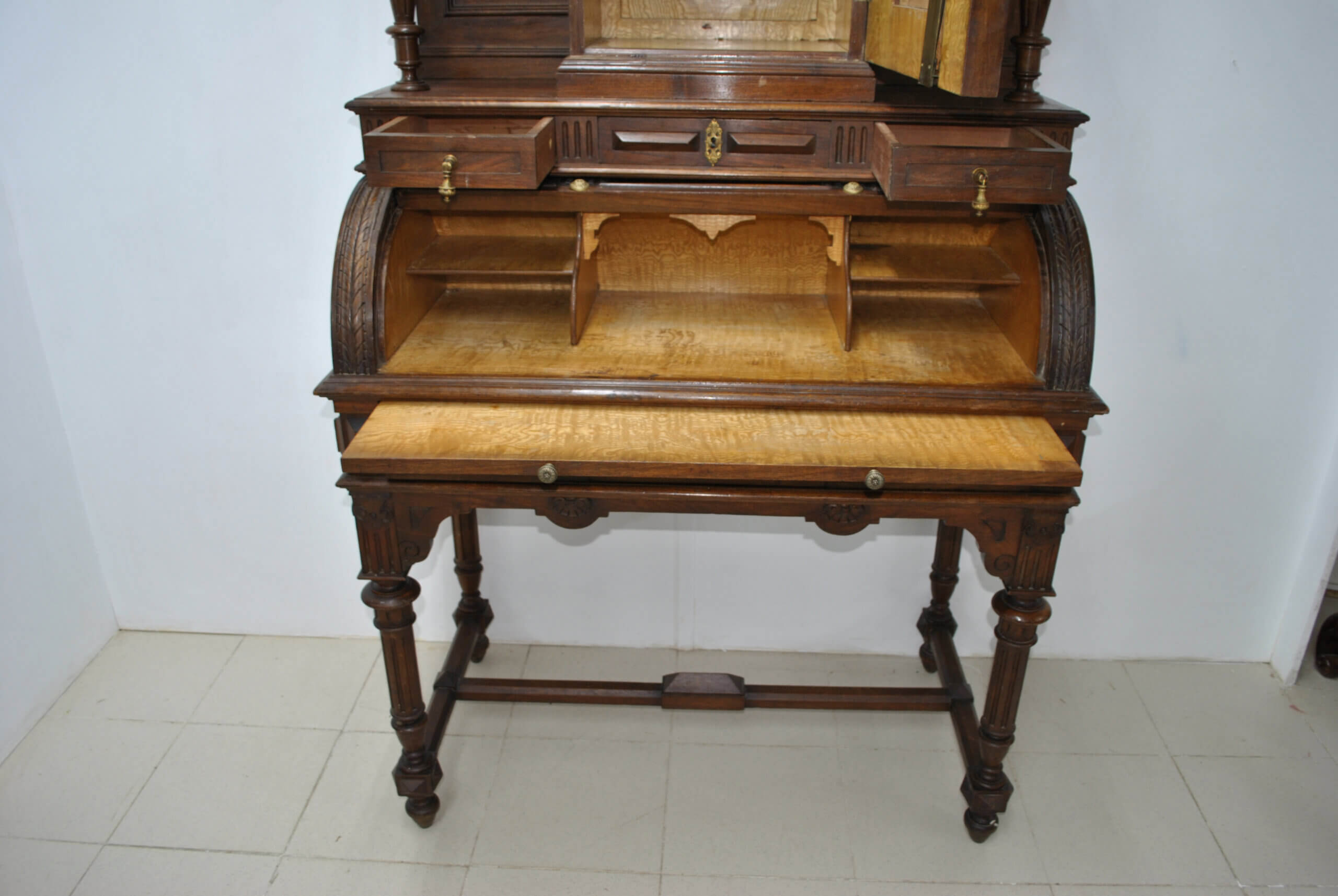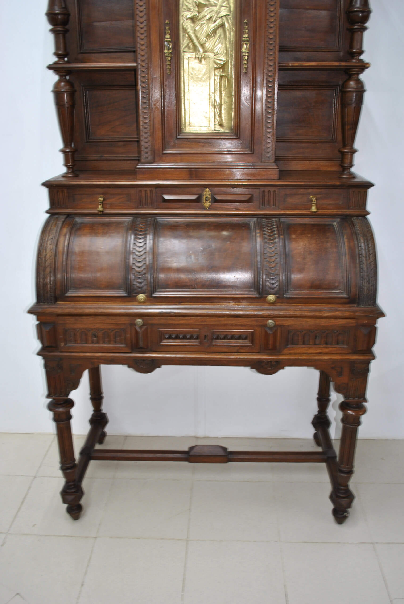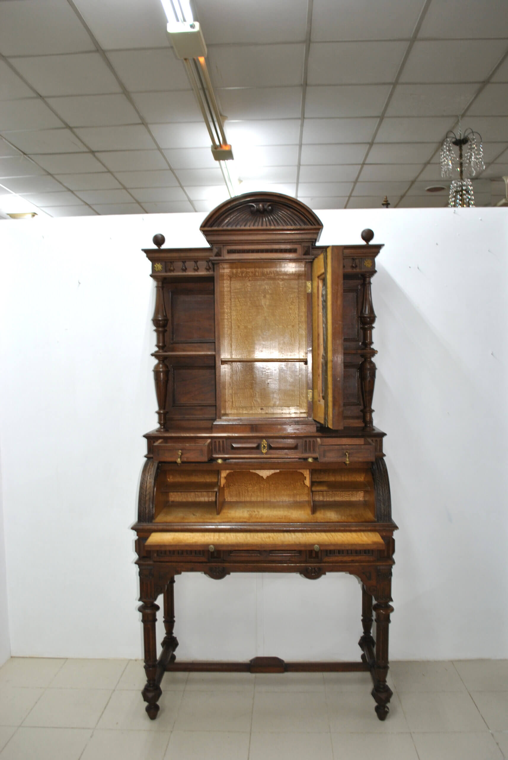 REF: PA-329 : Precioso mueble escritorio antiguo de gran presencia, realizado en madera maciza con una cuidada talla artesanal y elegantes detalles de estilo renacentista.