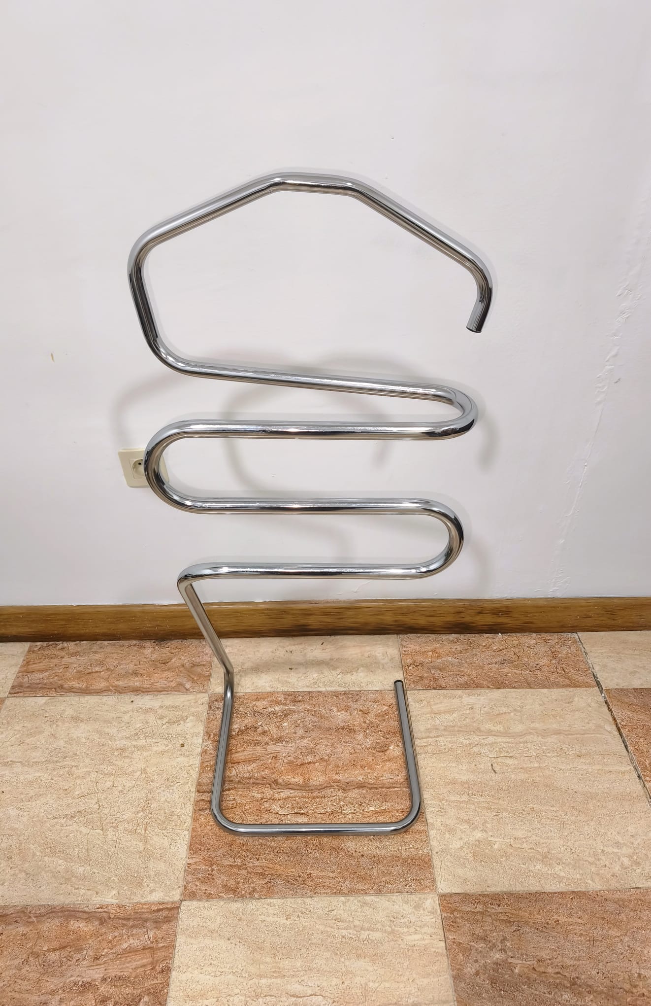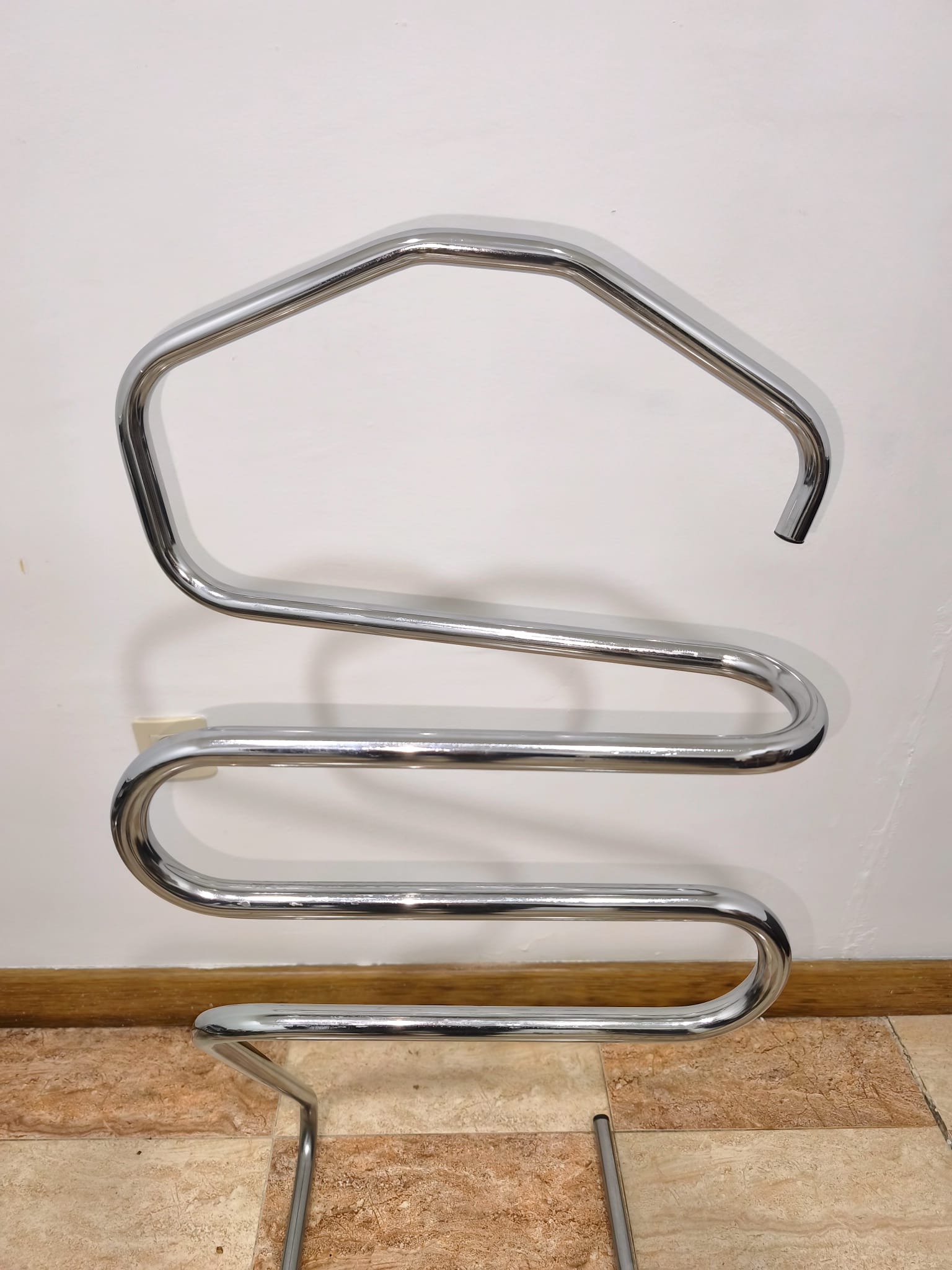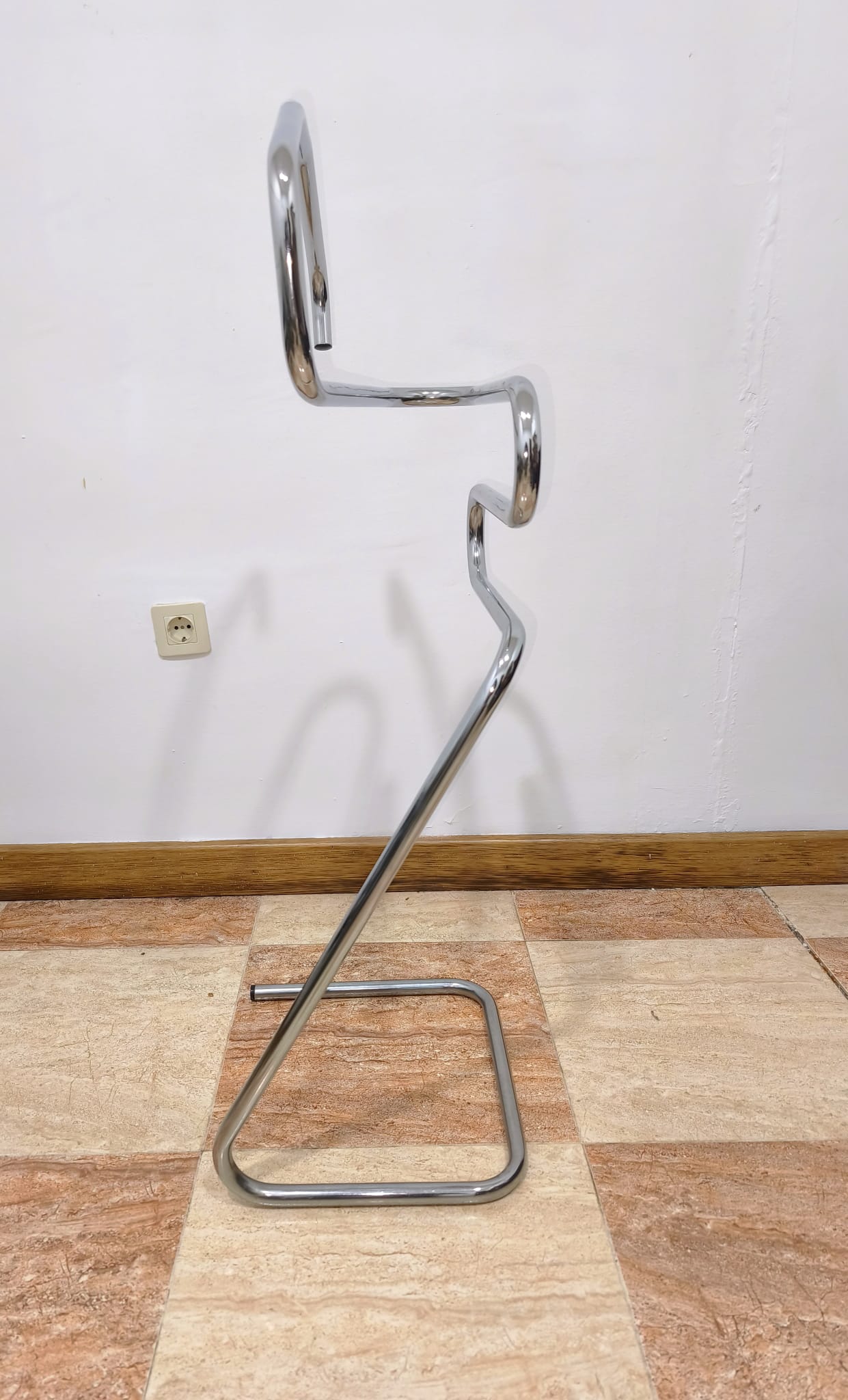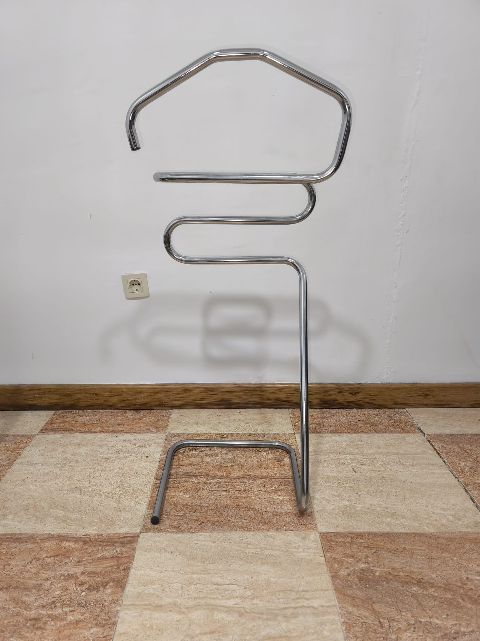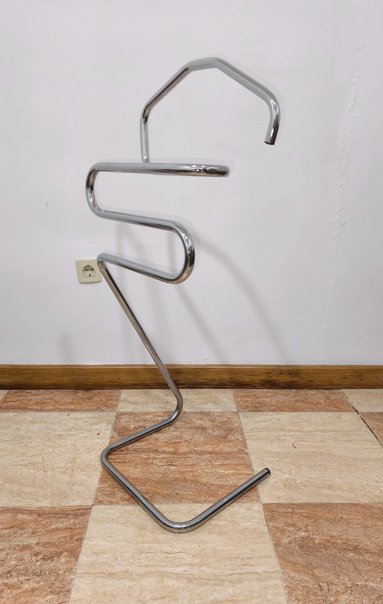 REF: AJ8370 – Original perchero de pie o gabán de pie con estructura tubular de metal cromado tipo Bauhaus, de los años 70.