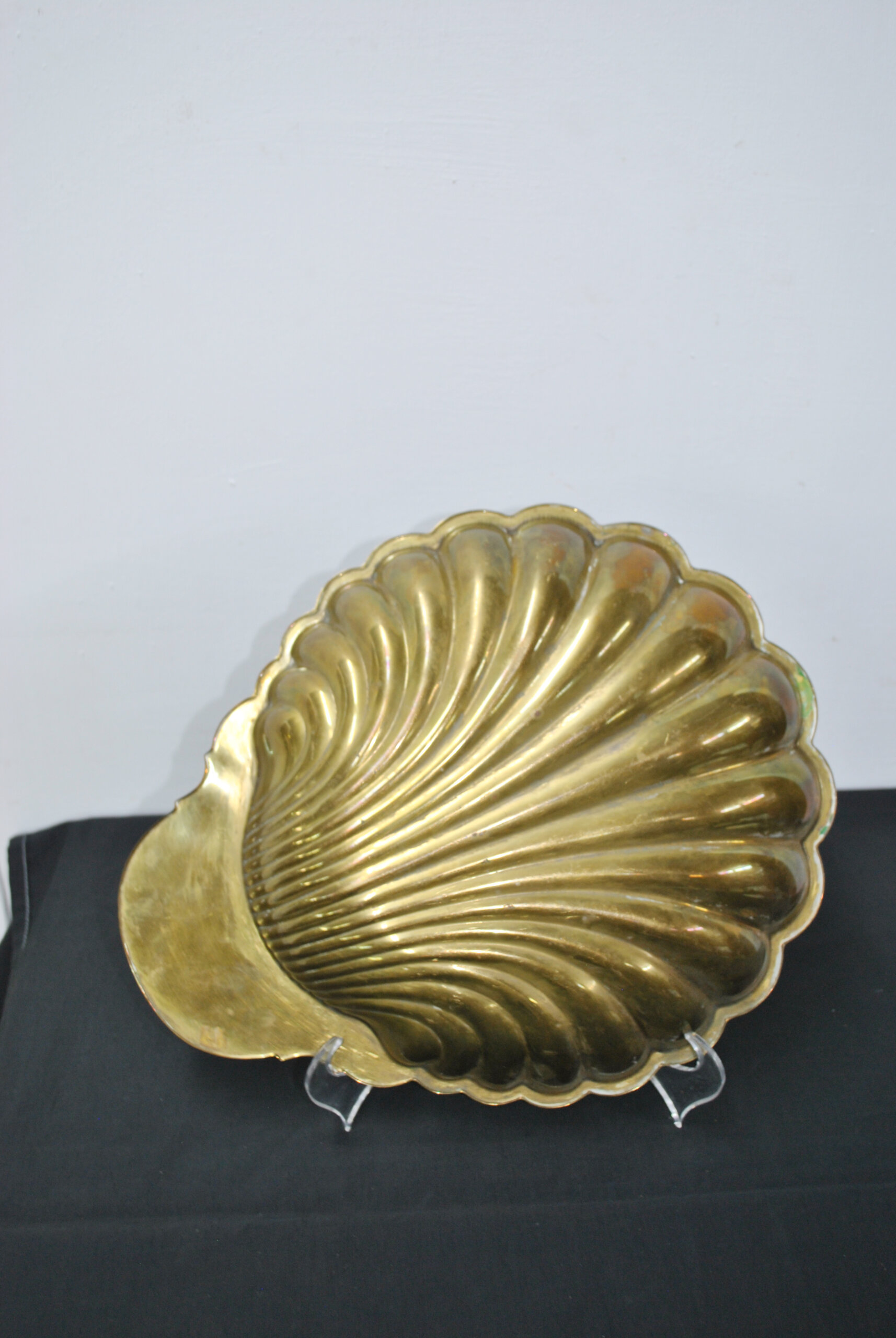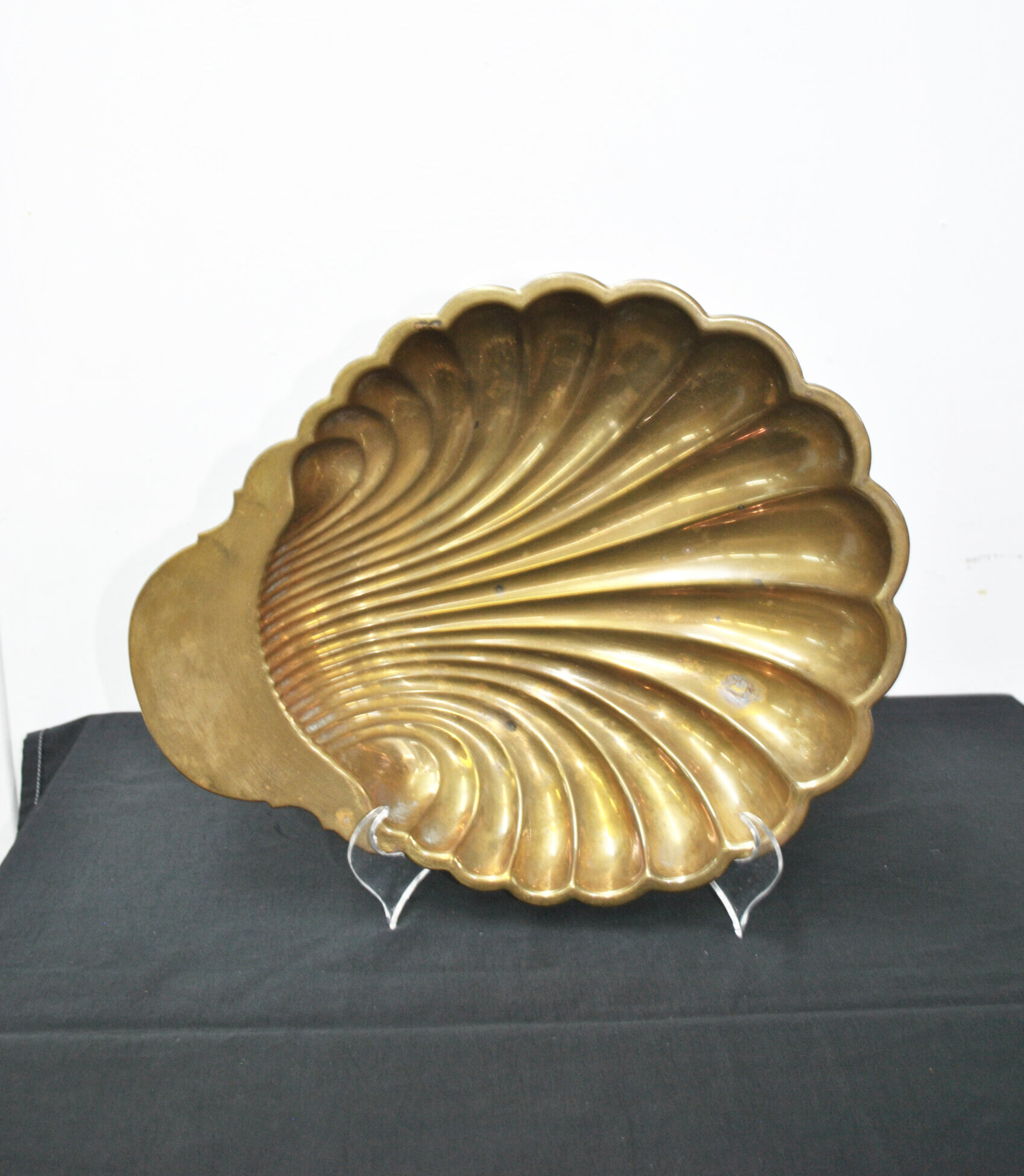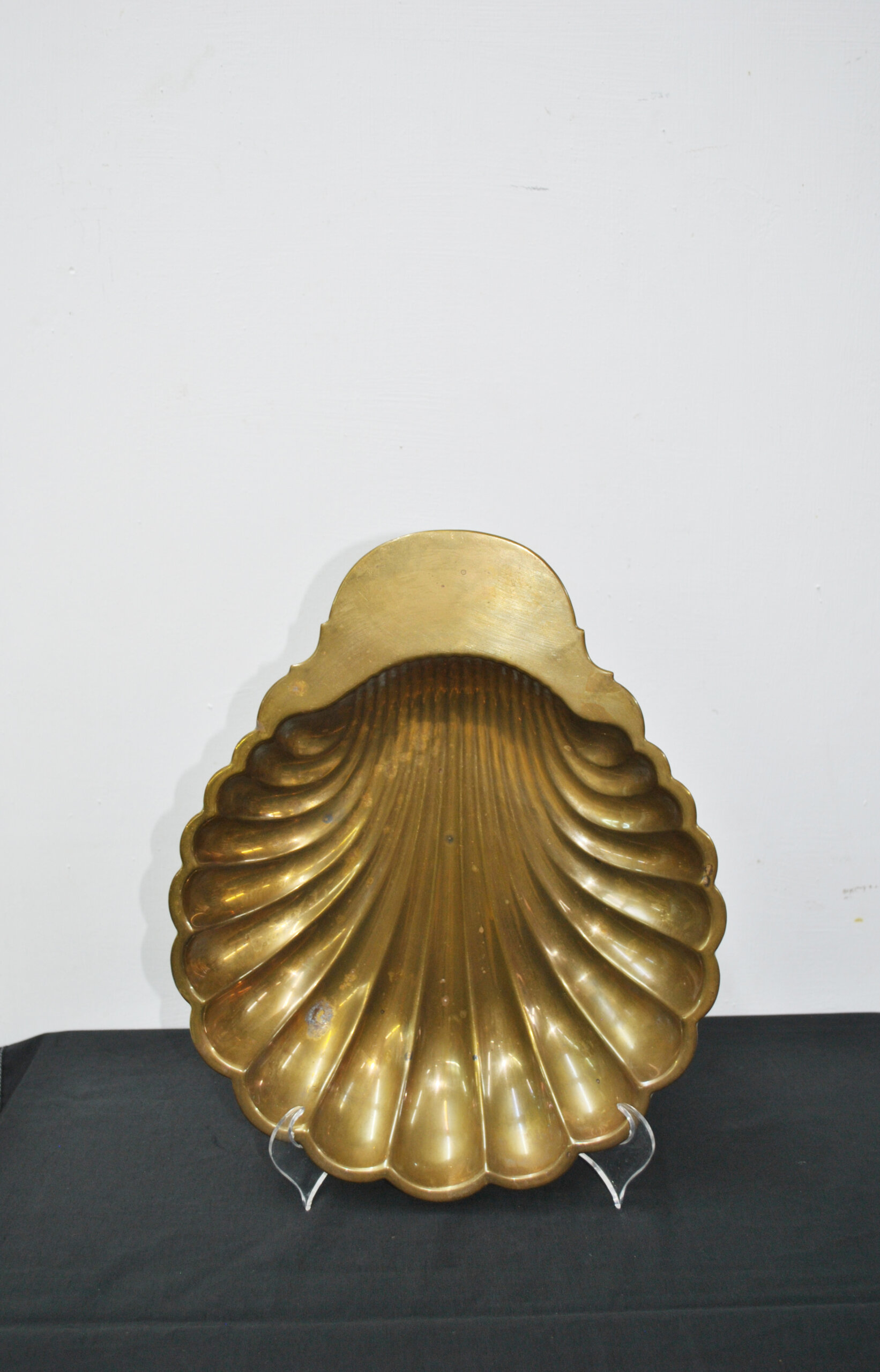 REF: 11413 – Antigua pila o fuente decorativa de latón con forma de concha marina, una pieza clásica y elegante ideal para coleccionistas o amantes de las antigüedades. Su diseño finamente trabajado resalta los pliegues naturales de la concha, con un hermoso acabado dorado que conserva la pátina original del tiempo, aportándole un encanto único y auténtico.