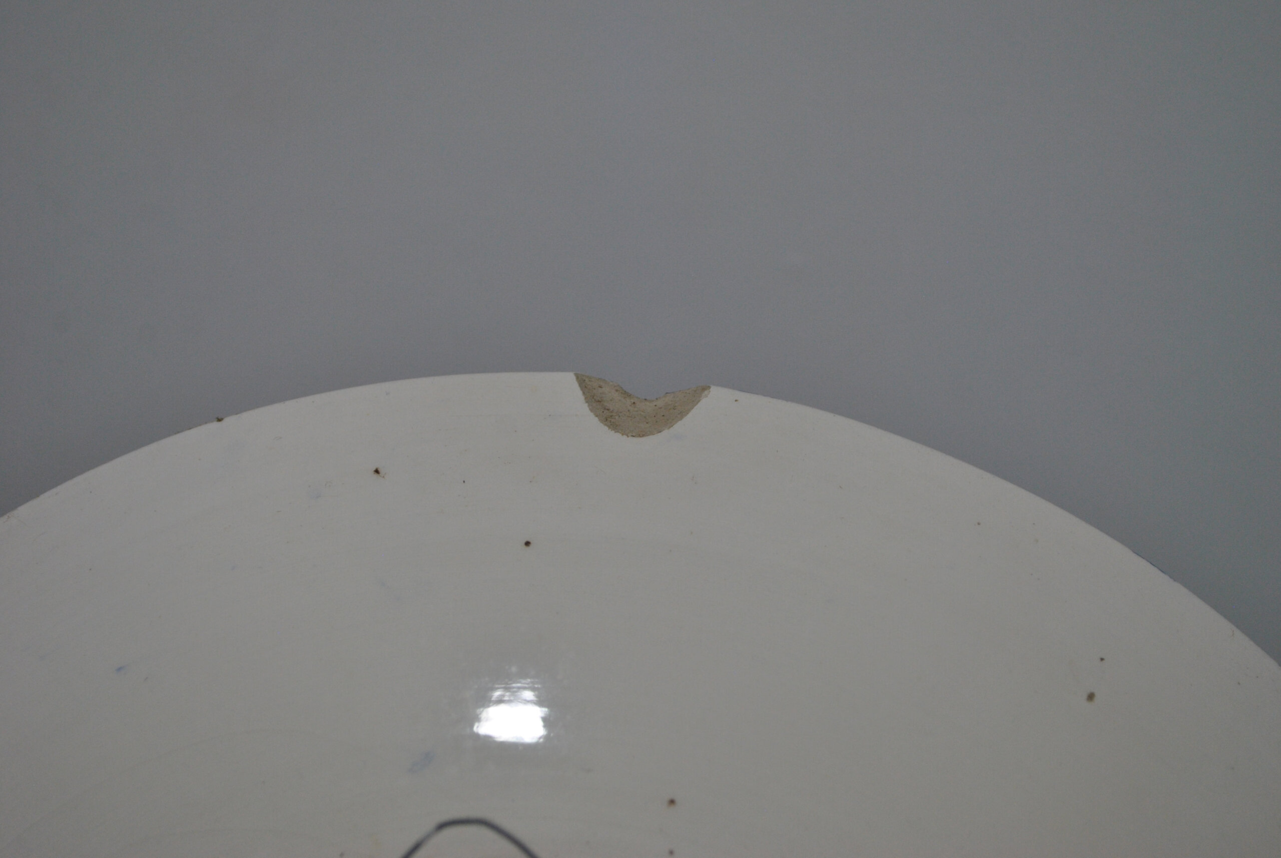 Se encuentra en buen estado general, con señales de uso acordes a su antigüedad, incluyendo un pequeño desconchón en el borde (visible en imágenes), lo que no resta belleza a la pieza sino que confirma su autenticidad y paso del tiempo.