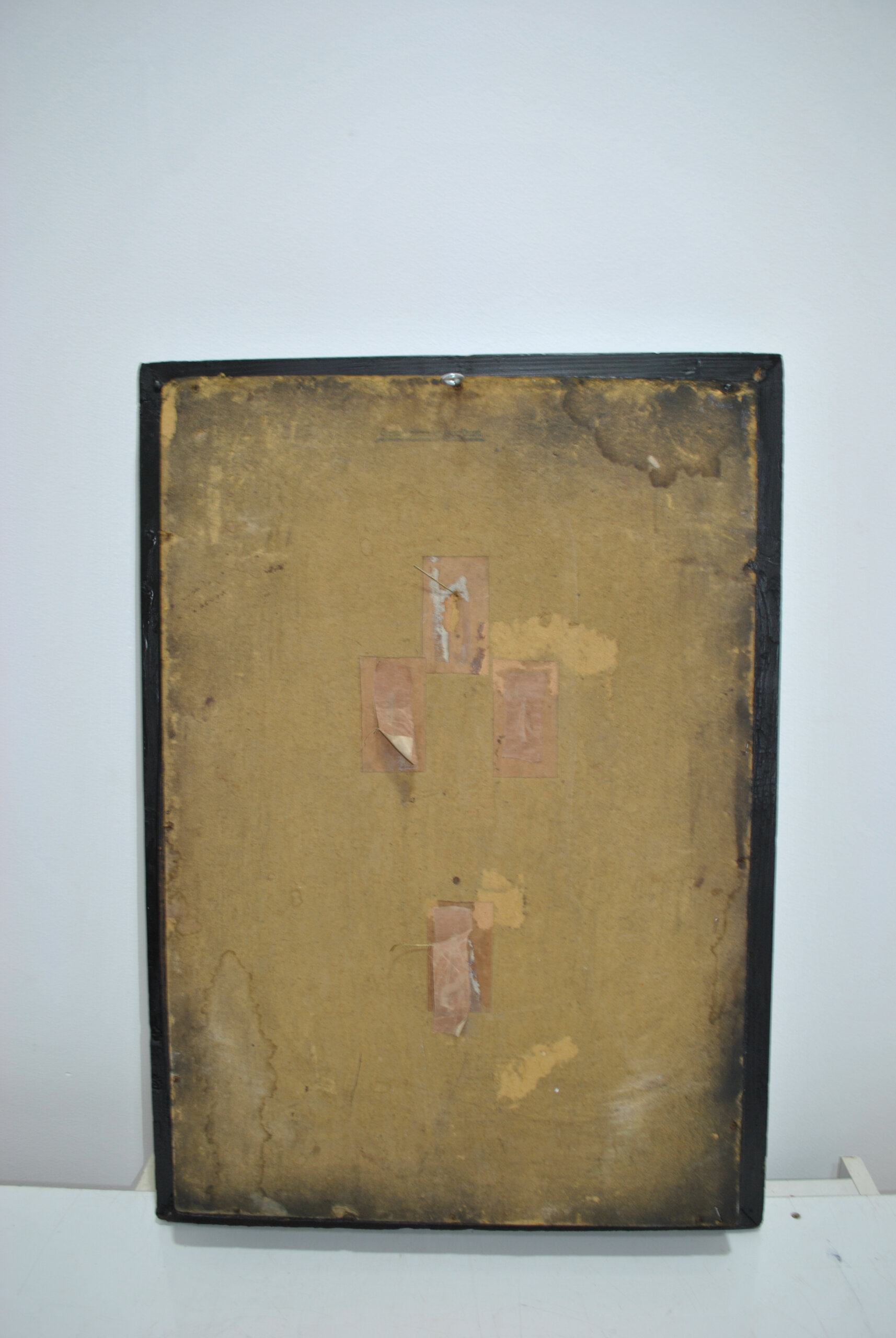 Todo el conjunto está protegido bajo cristal y enmarcado en un marco de madera negra de época.