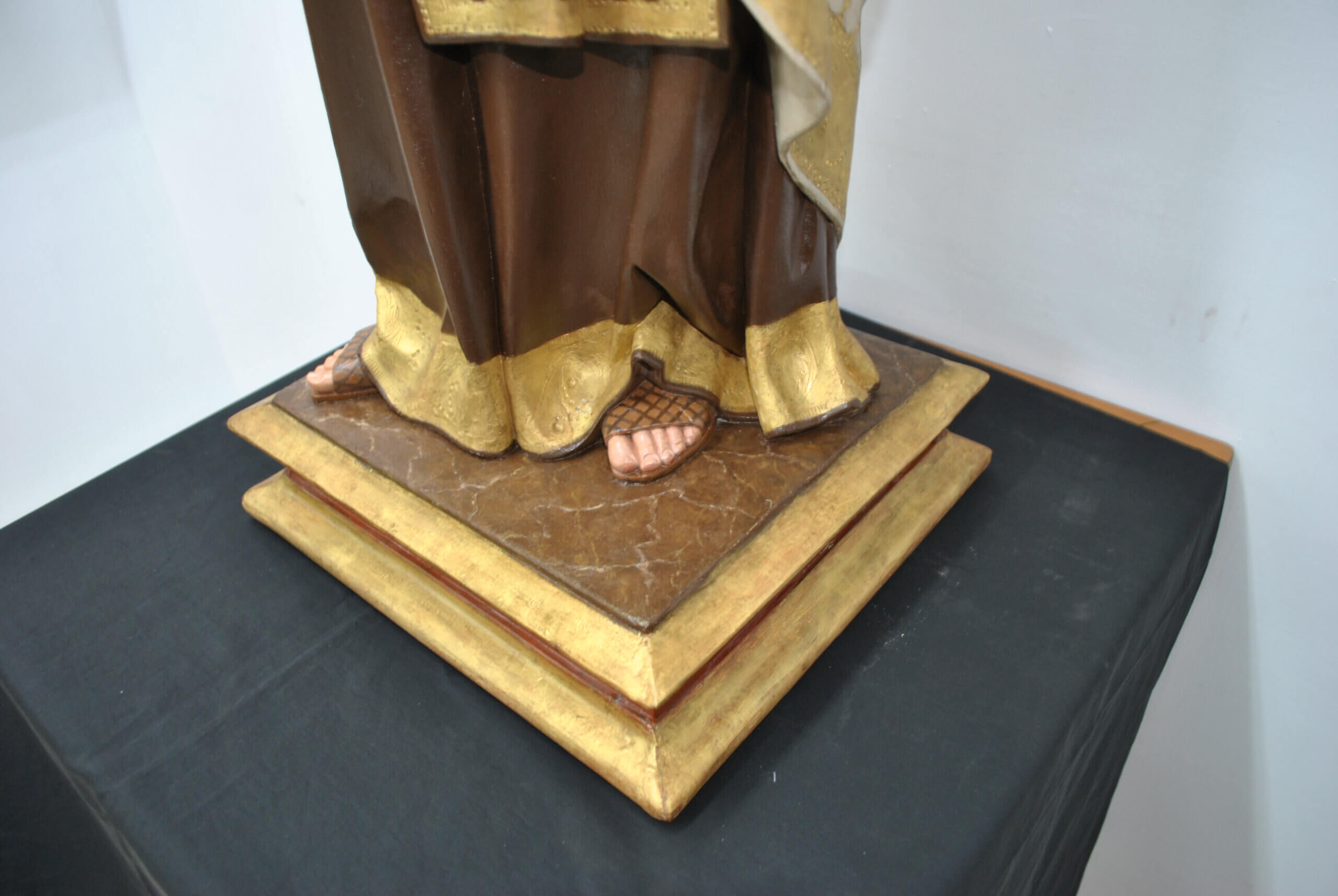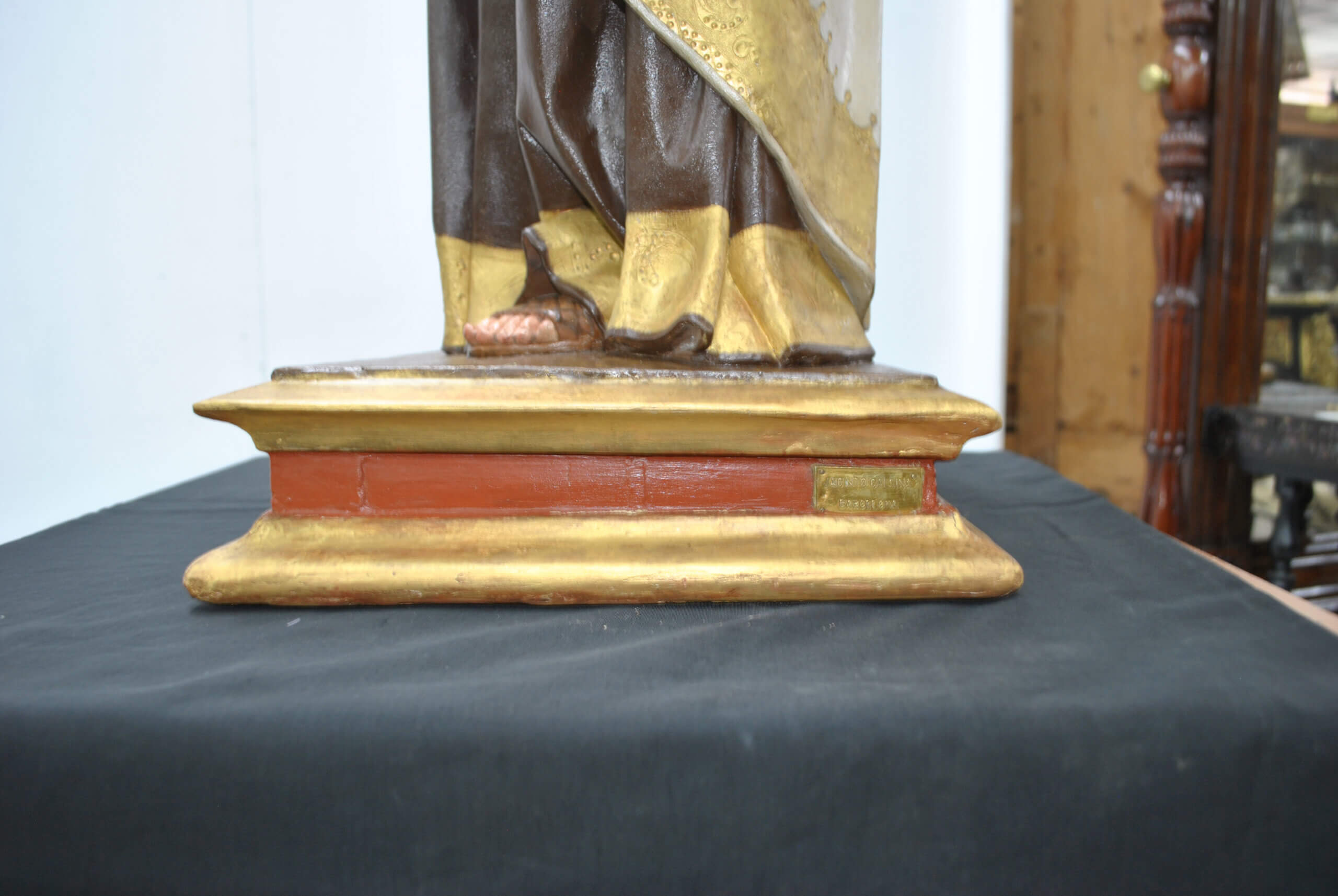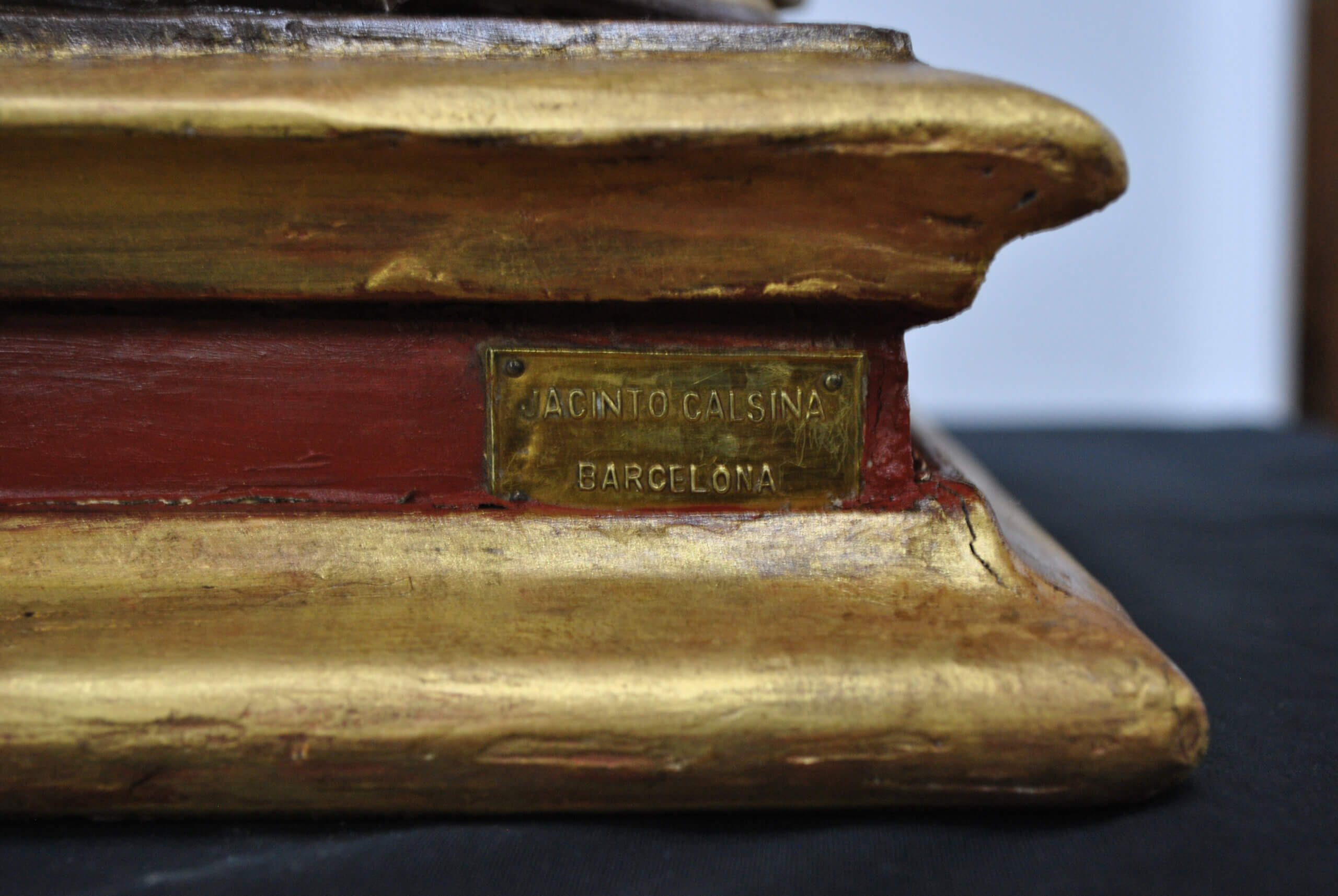 “Jacinto Calsina – Barcelona”, reconocido taller de imaginería religiosa activa en la primera mitad del siglo XX, especializado en esculturas devocionales de gran factura.